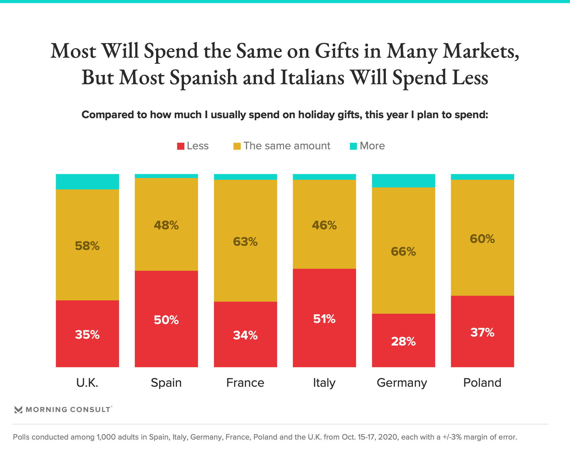 - Spanish and Italian shoppers are most likely to say they are giving fewer gifts this holiday season.