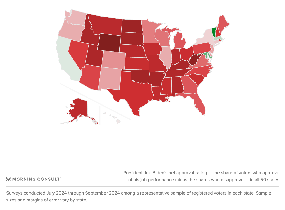 Biden was an albatross: Heading into Election Day, voters were more likely to disapprove than approve of President Joe Biden in 46 states
