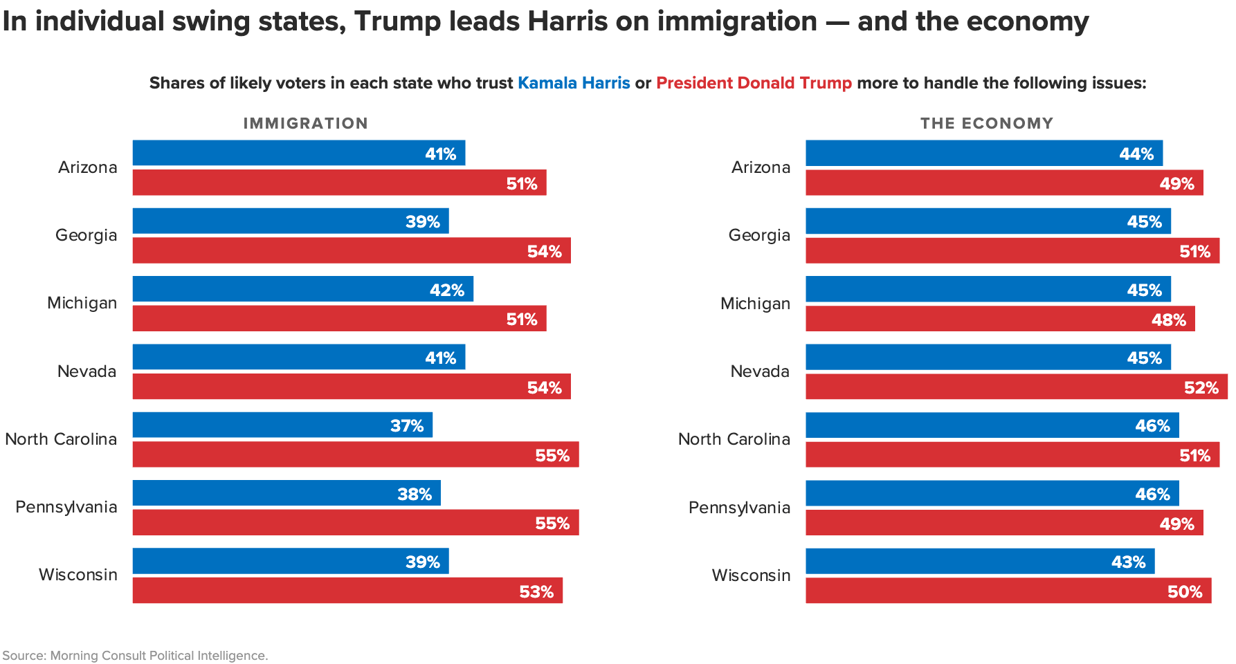 While Vice President Harris performed better than President Joe Biden on economic issues, Trump still outperformed her in the key battleground states