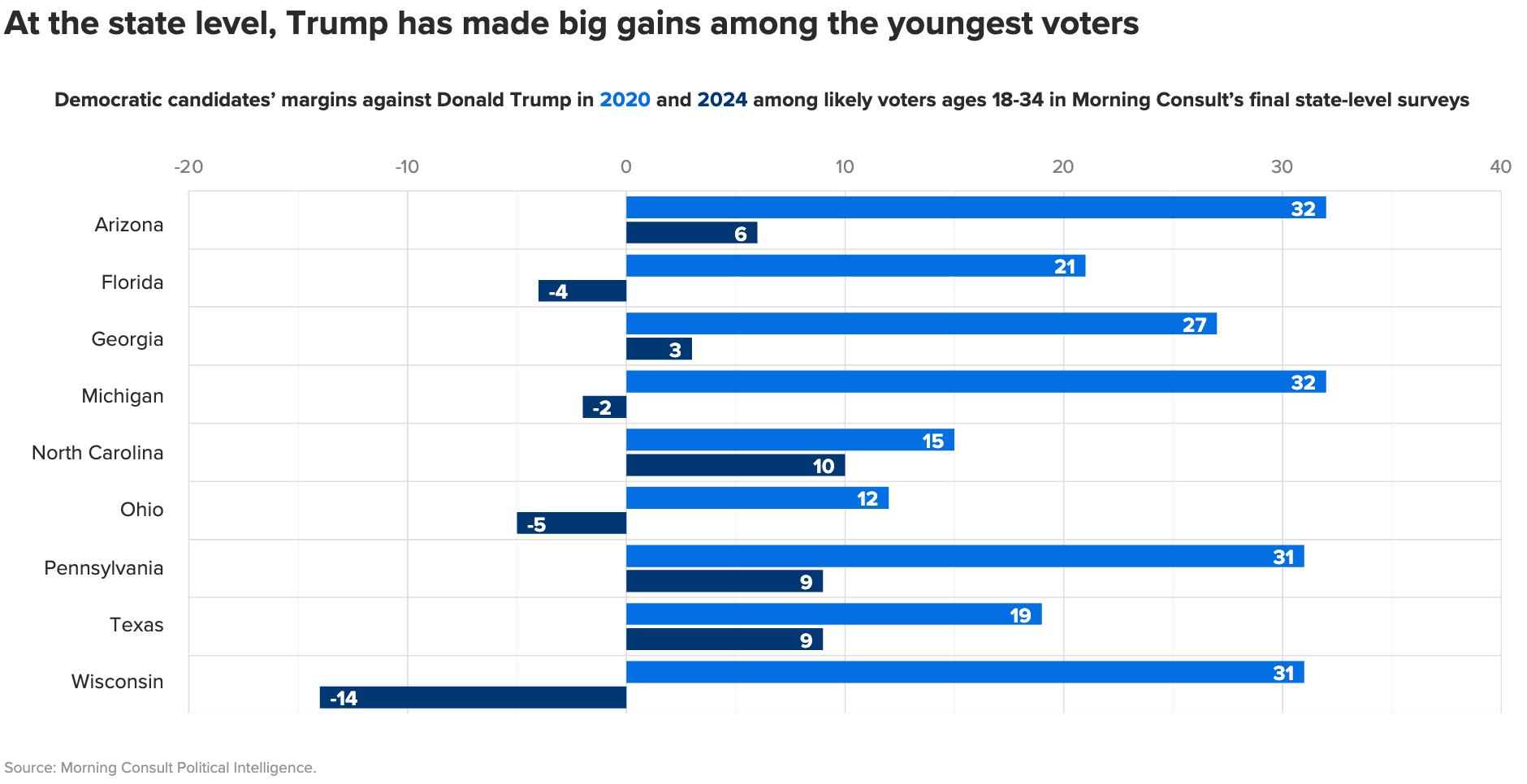 Some of the most striking shifts were among voters ages 18-34, where Trump made significant gains