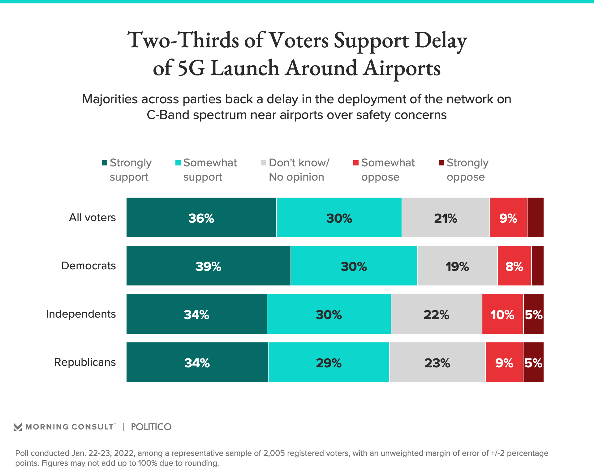 - Just 13 percent of voters said they opposed the delay, which also came at the urging of leading Democrats in Congress after the trade group Airlines for America warned of “significant operational disruption” if 5G was fully deployed.
