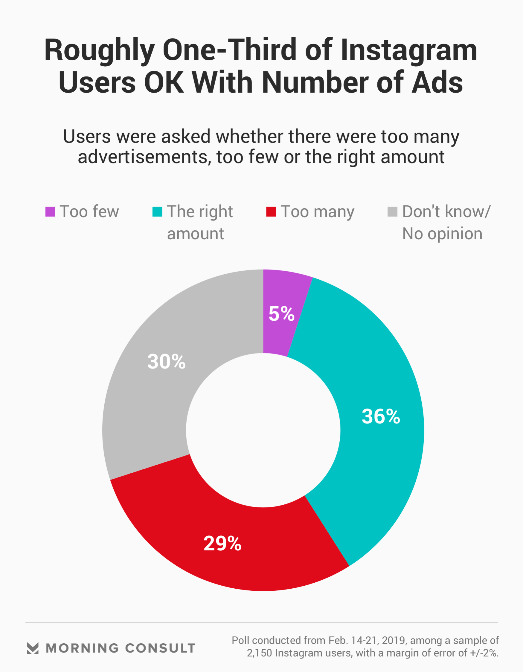 - 39% of Instagram users said they were comfortable with accounts on the platform posting ads on their profiles, while 35% said they were not comfortable with the idea.