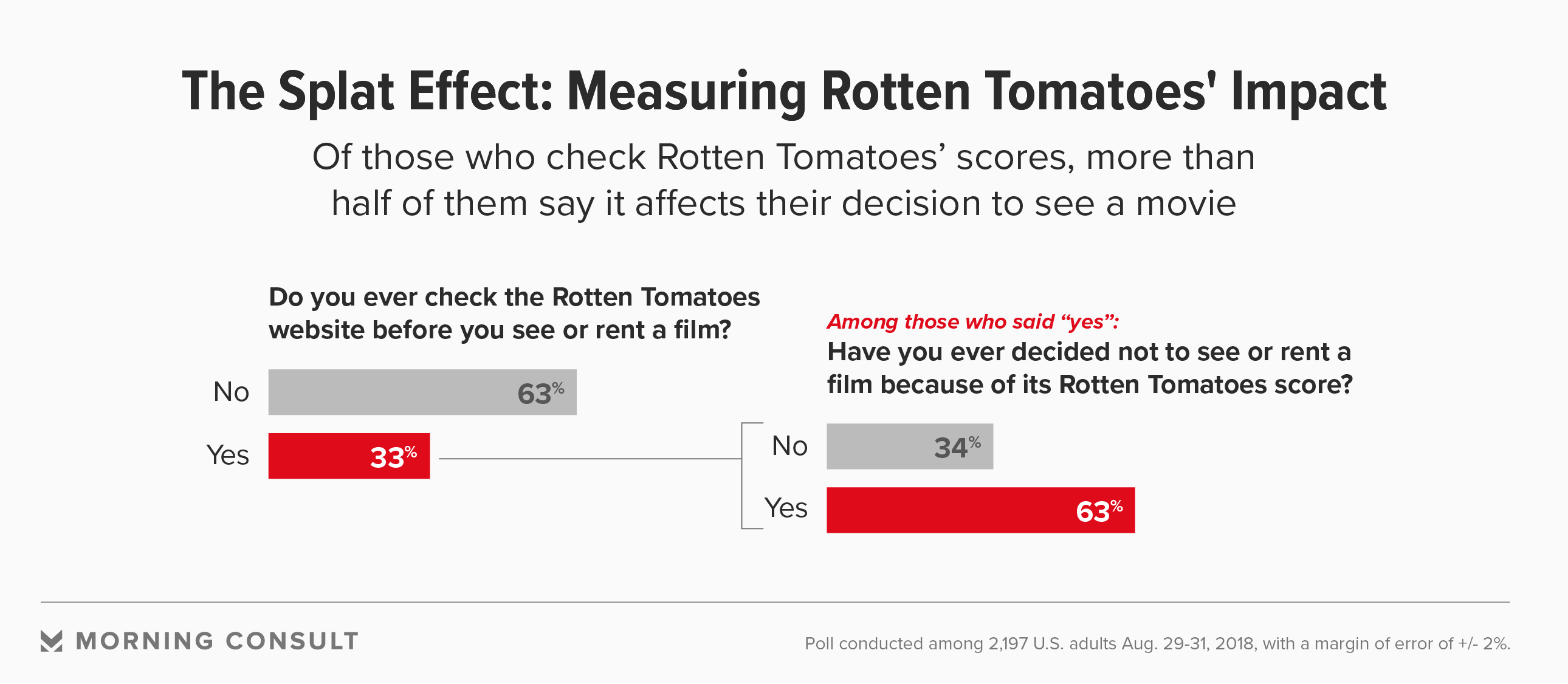 One-third of U.S. adults check Rotten Tomatoes before seeing a film, and 63% of those have opted not to see a film due to its scoring on the site.