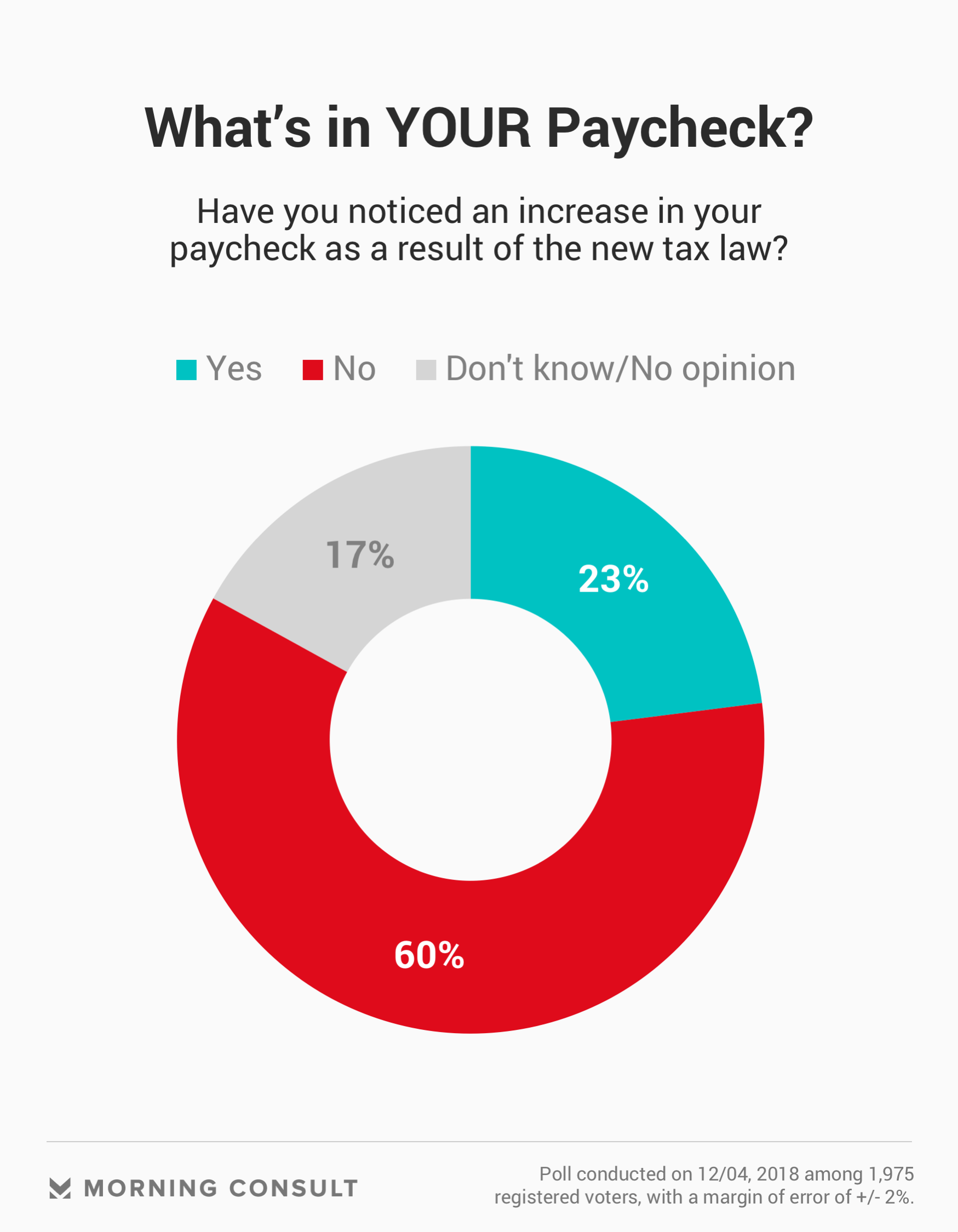 23% of registered voters said they noticed an increase in their paycheck because of the Republican tax overhaul.