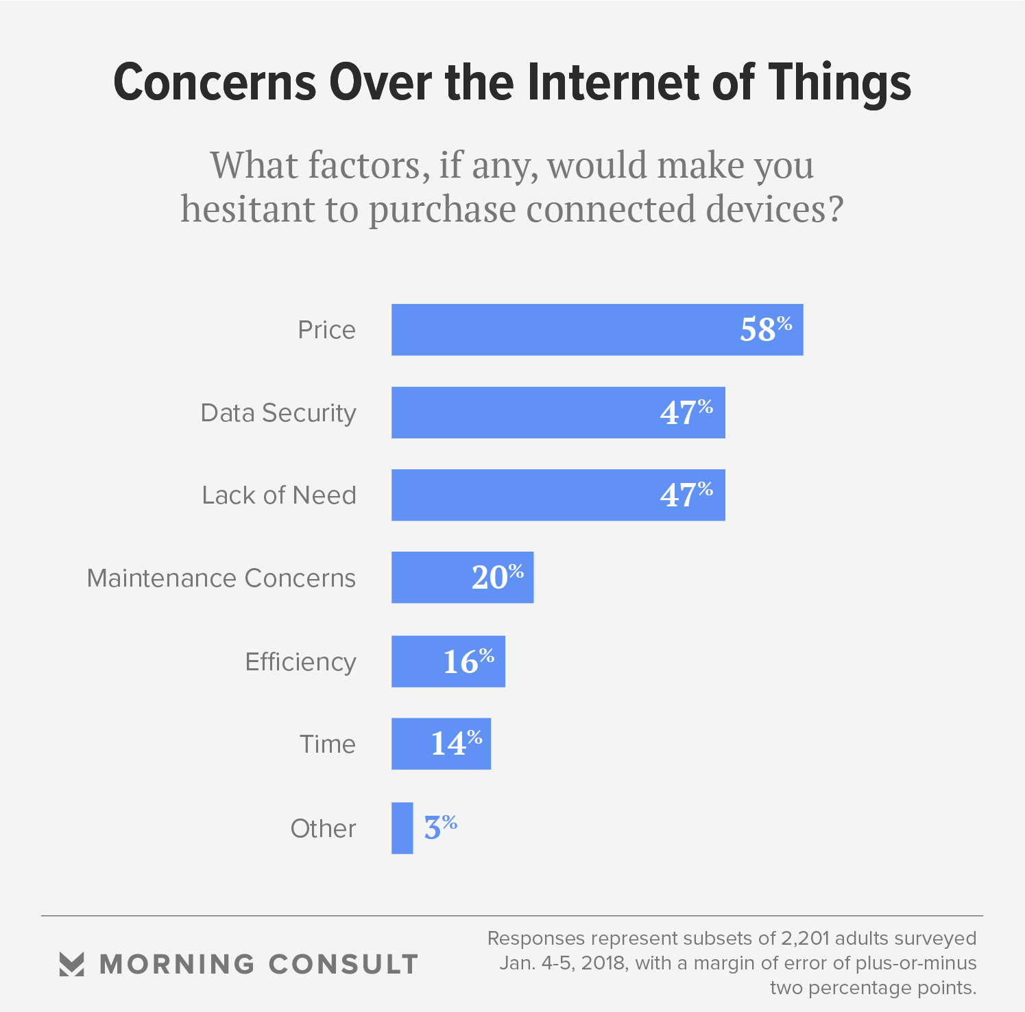 This week’s Consumer Electronics Show in Las Vegas features some of the latest in next-generation smart technology from companies around the world, but U.S. consumer demand for these devices appears to be hindered by cost and data-security concerns, as well as a lack of desire to purchase the products, according to a new Morning Consult survey.