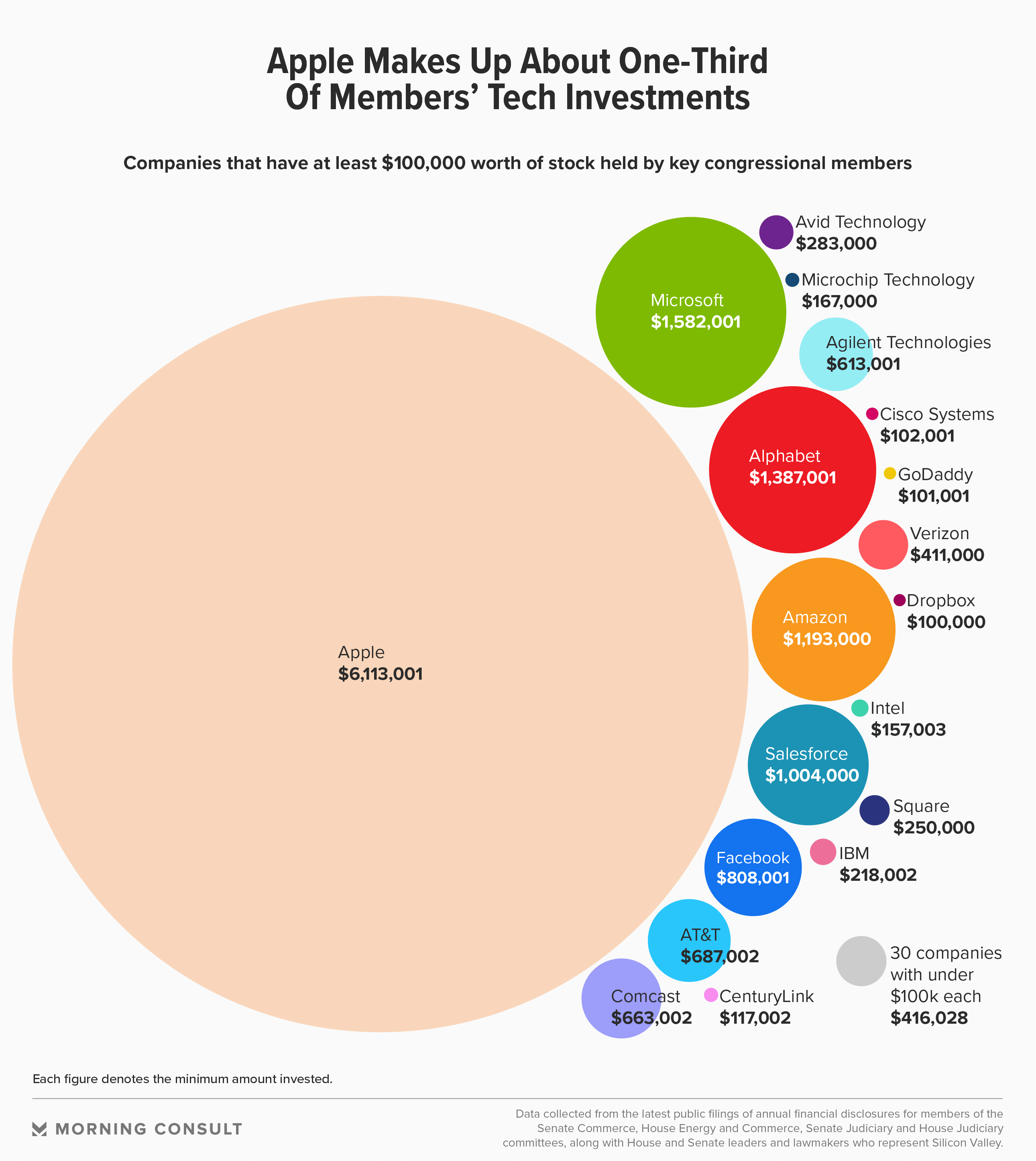 Apple Tops the List of Tech Stock Holdings by Key Regulatory Figures in Congress