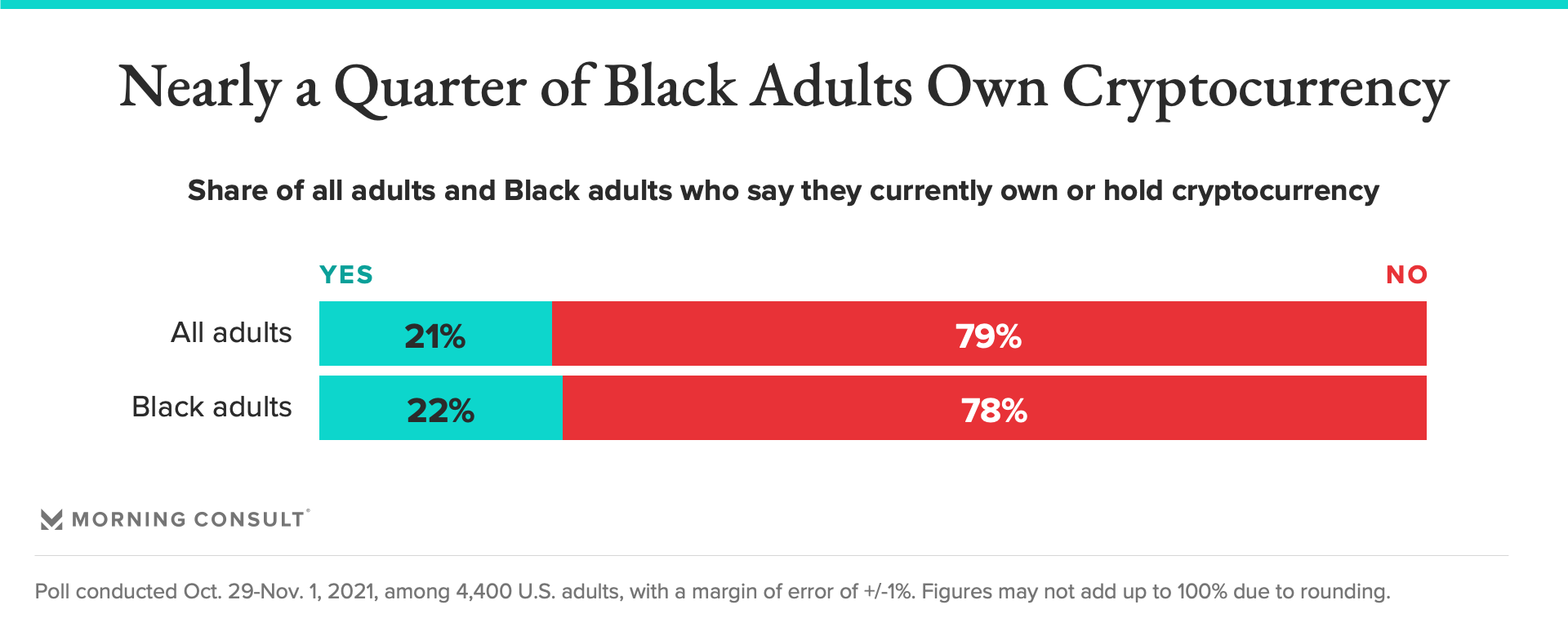 She cited statistics from Morning Consult, as well as other research, that shows cryptocurrency ownership among Black adults is higher than Black ownership of other financial assets.