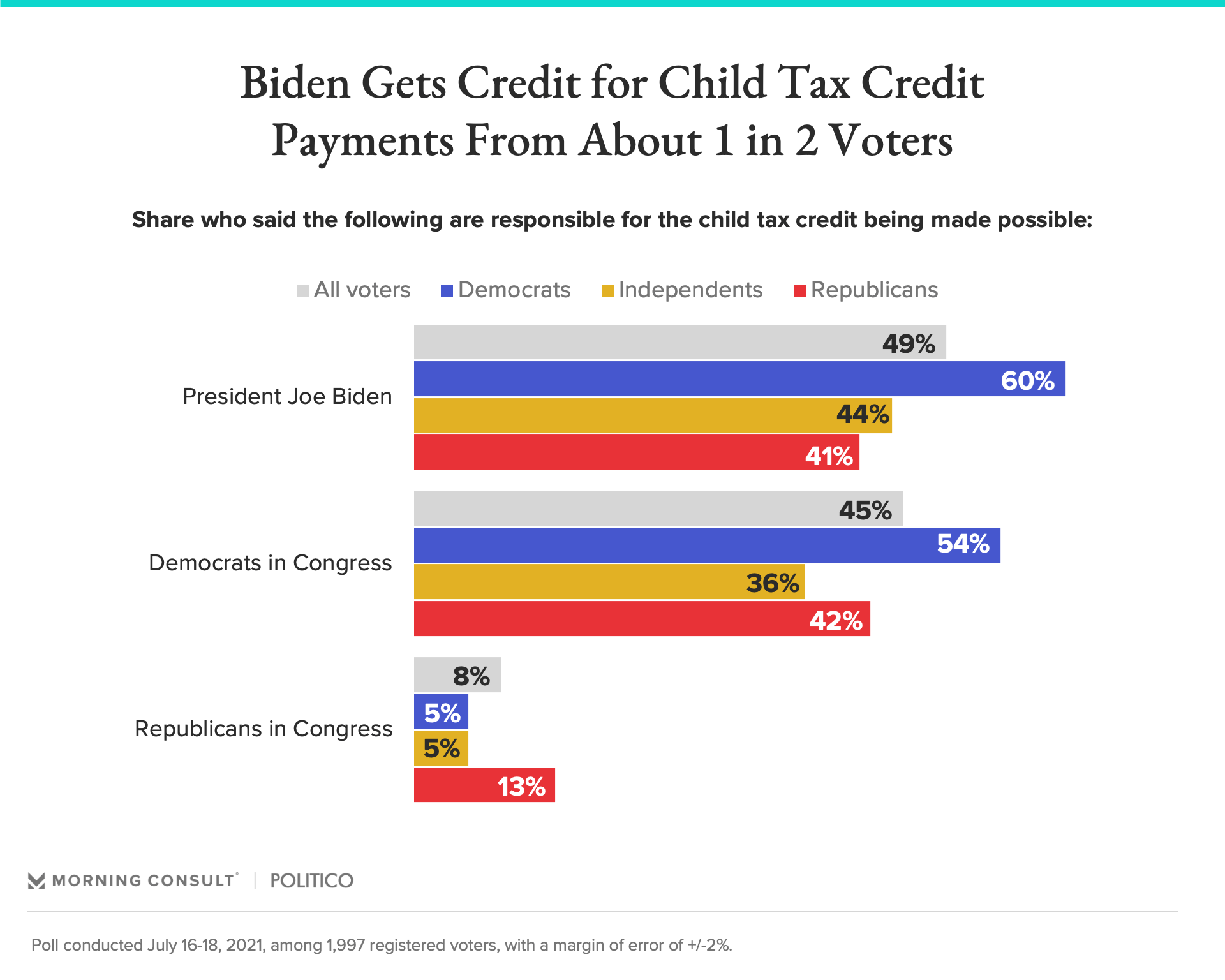 Despite the criticisms of the expanded tax credit, overall, the Biden administration appears to be getting most of the credit for the payments.