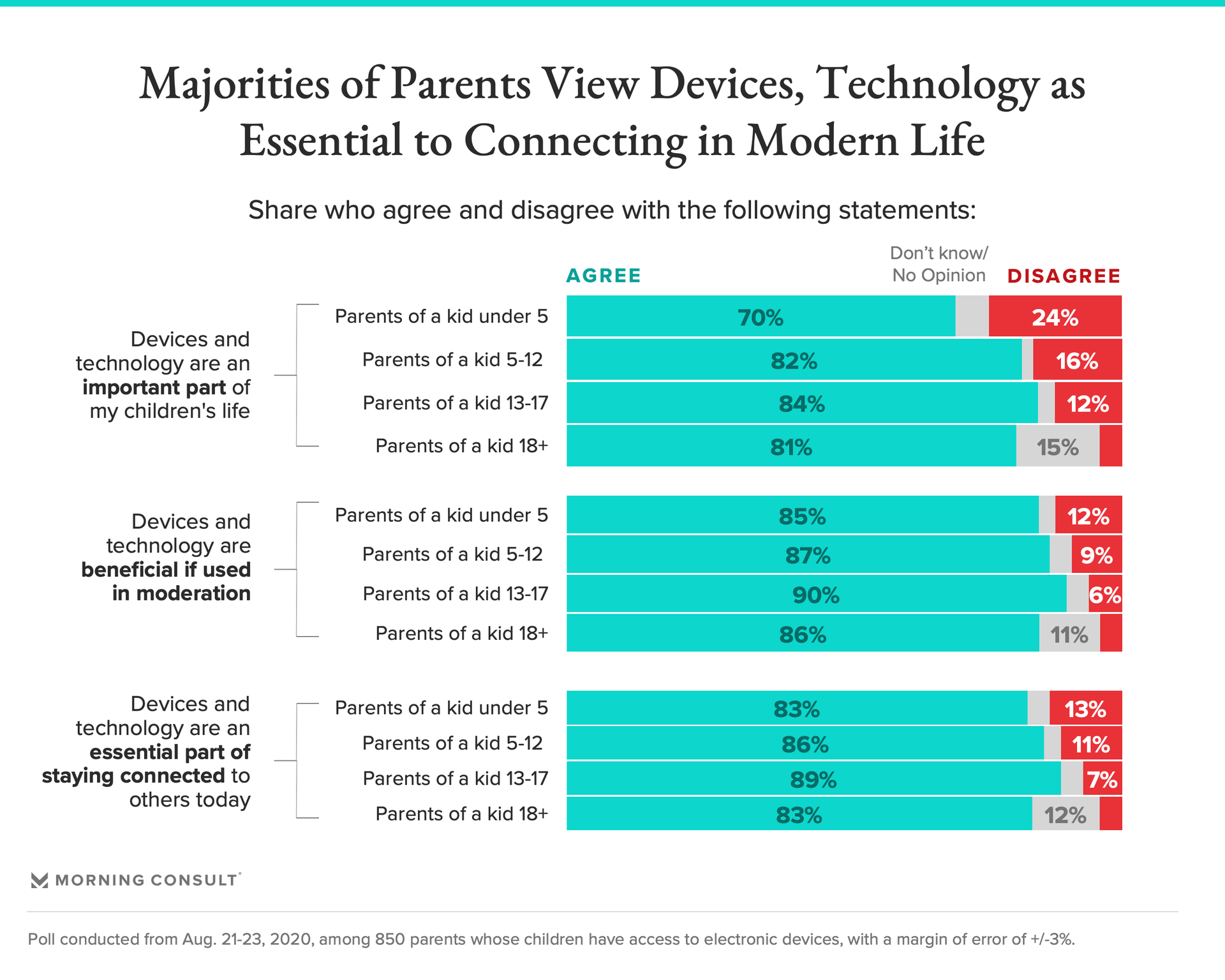 Parents do understand the importance of technology in their children’s lives, per the new poll: 80 percent said devices and technology are important in the lives of children, while 86 percent said devices are an essential part of staying connected.