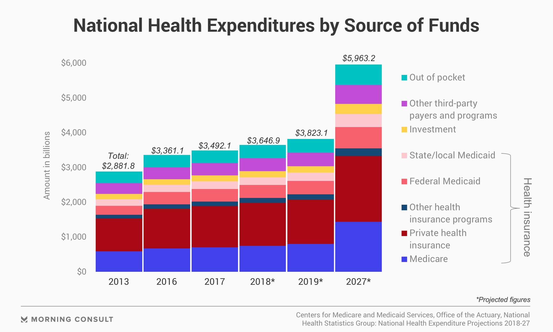 National health expenditures are anticipated to grow at an average of 5.5 percent per year from 2018 to 2027, fueled primarily by demographic and economic changes as Americans grow older and approach the Medicare age of eligibility, according to the report. As a large share of the baby boomer generation shifts to Medicare, annual growth in Medicare spending is anticipated to average 7.4 percent over this period, compared to 5.5 percent for Medicaid and 4.8 percent for the private market.