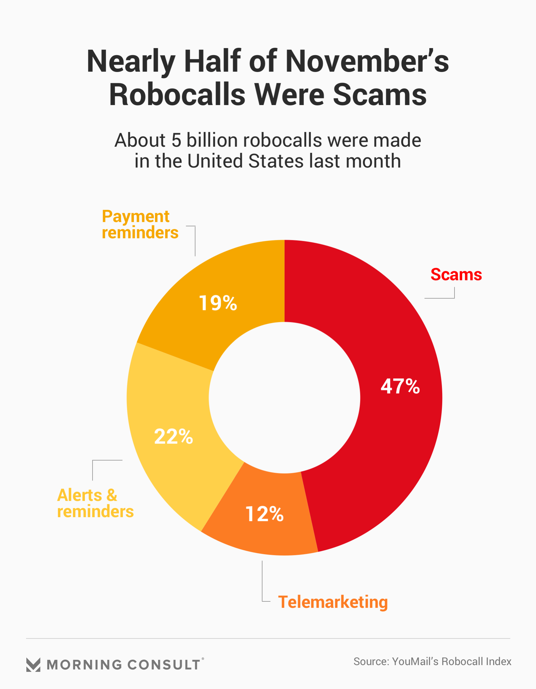 The compromise bill comes at a time when robocalls in the United States are growing, according to YouMail, which estimates that 54 billion robocalls have been placed nationwide in 2019 so far -- outpacing 2018’s 47.8 billion. And nearly half of the 5 billion calls in November were classified as scams.