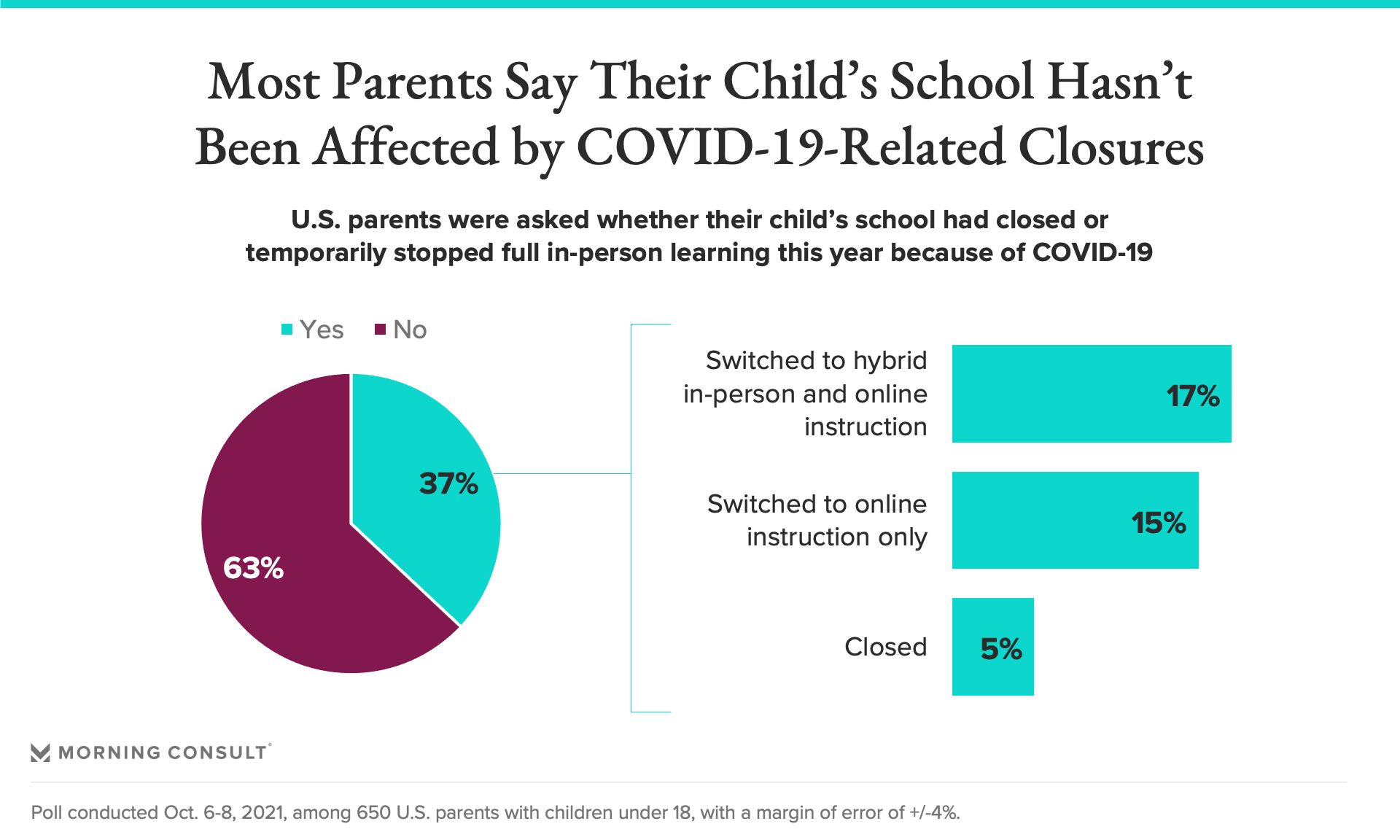 More than a month into the new school year, nearly 2 in 5 parents say COVID-19 has disrupted in-person learning for their children, according to new Morning Consult data that underscores the country’s patchwork approach to keeping the virus out of the classroom.