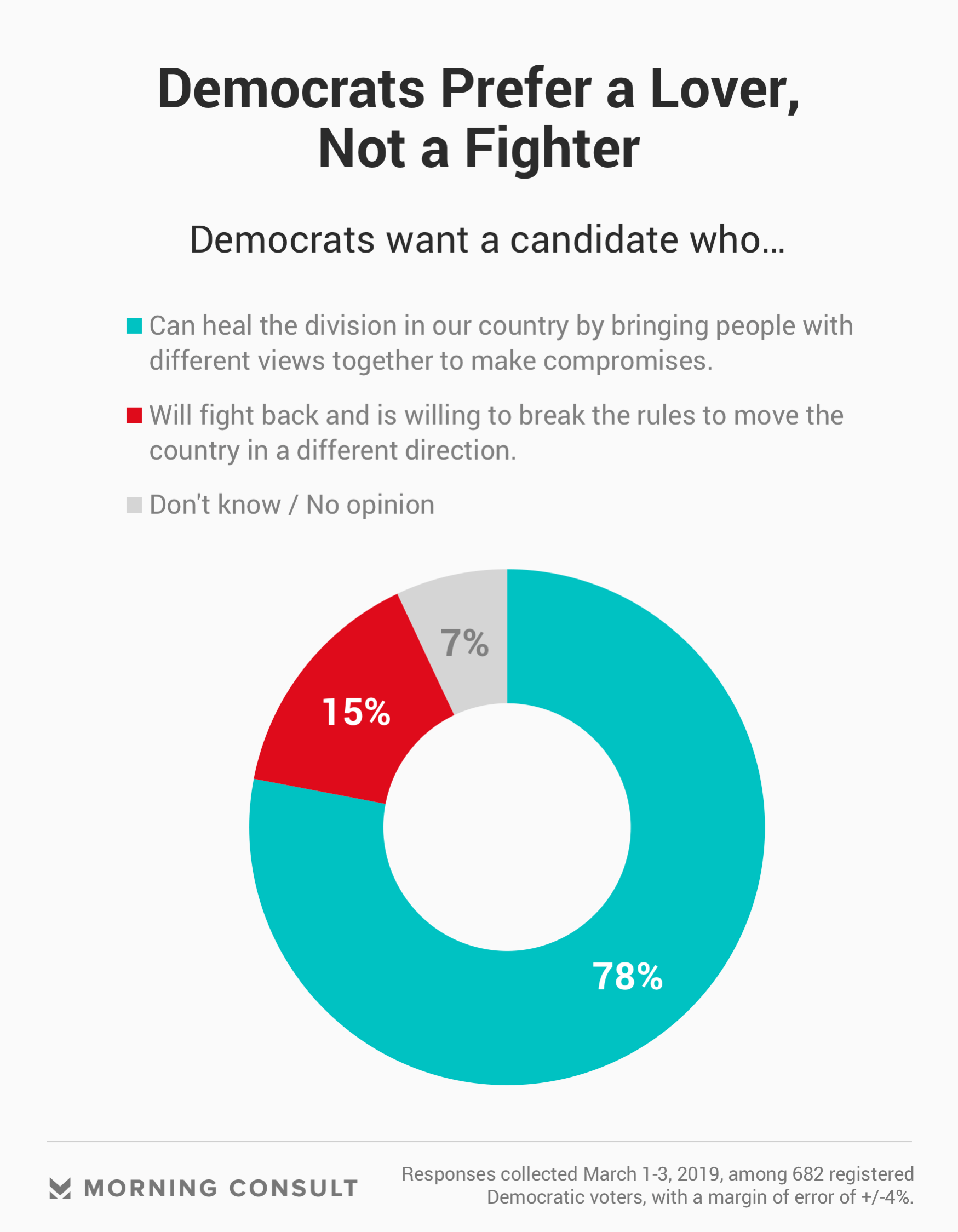 - 78% of Democratic voters said they prefer a candidate who can heal the division in the country.