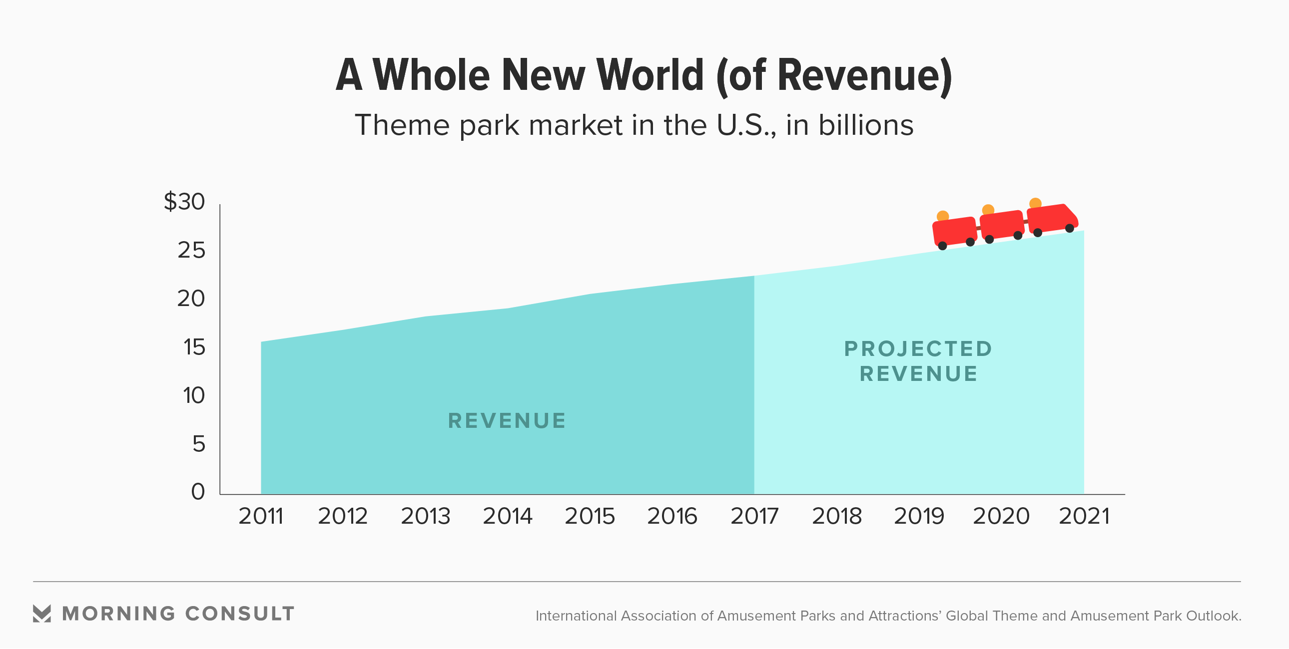 The theme park market in the United States is outpacing the growth of the economy and should total about $27.2 billion in 2021, up from an estimated $22.6 billion in 2017, according to the latest figures from the International Association of Amusement Parks and Attractions’ Global Theme and Amusement Park Outlook.