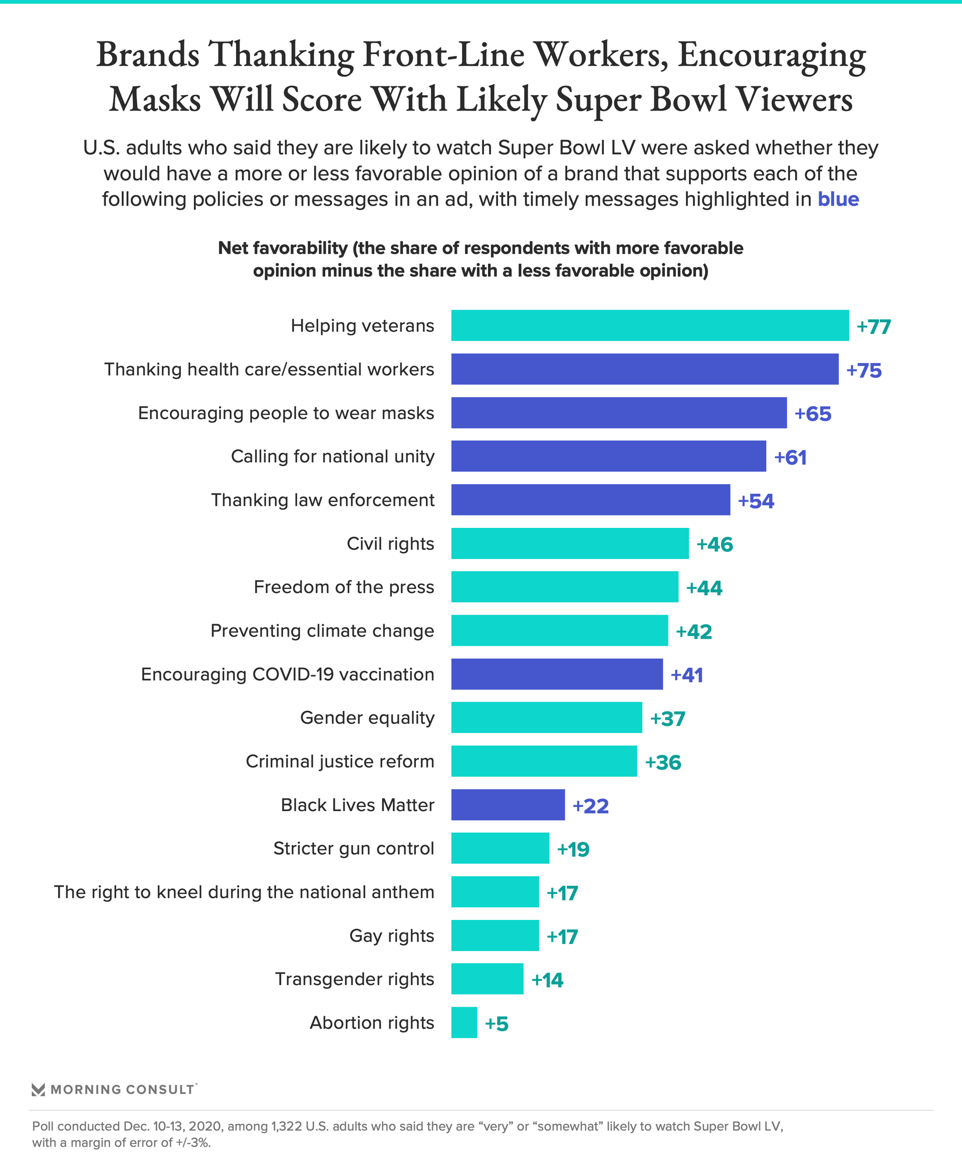 Following a year defined by a global pandemic, protests against racial inequality and a contentious presidential election, reports that the upcoming slate of Super Bowl advertisements could strike a more serious tone should come as no surprise. And while most Americans say funny commercials are still their favorite, new data shows the majority of likely Super Bowl LV viewers believe it is appropriate for brands to promote social justice in their spots.
