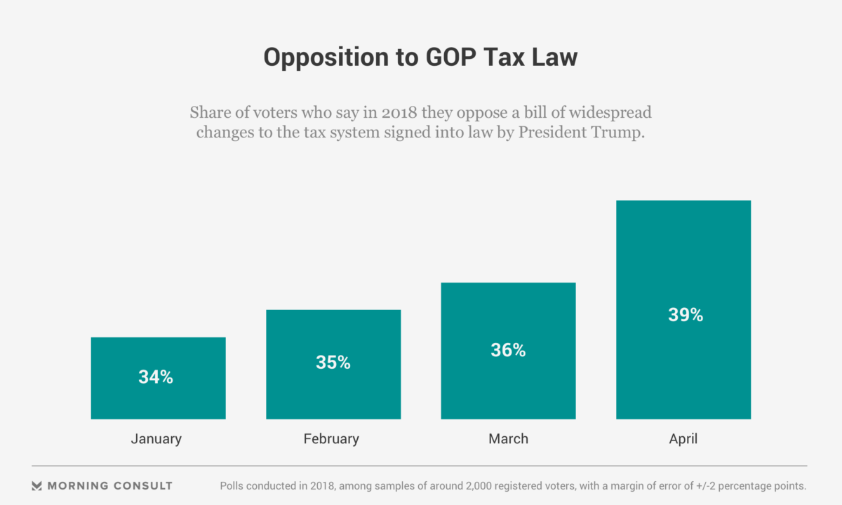 Overall support for the law has declined, with 44 percent saying they either strongly or somewhat back the tax overhaul, compared to 46 percent who said the same in March.