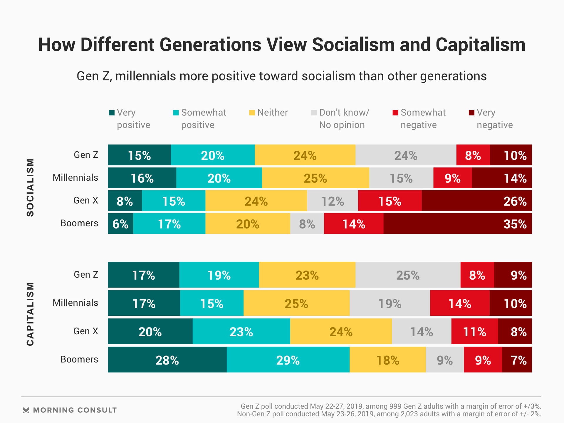 But most of that divide comes from the life experiences of each generation, experts said. The socialism-capitalism split defined political and economic discourse for baby boomers and the oldest Gen X-ers, but has faded for millennials and Gen Z.