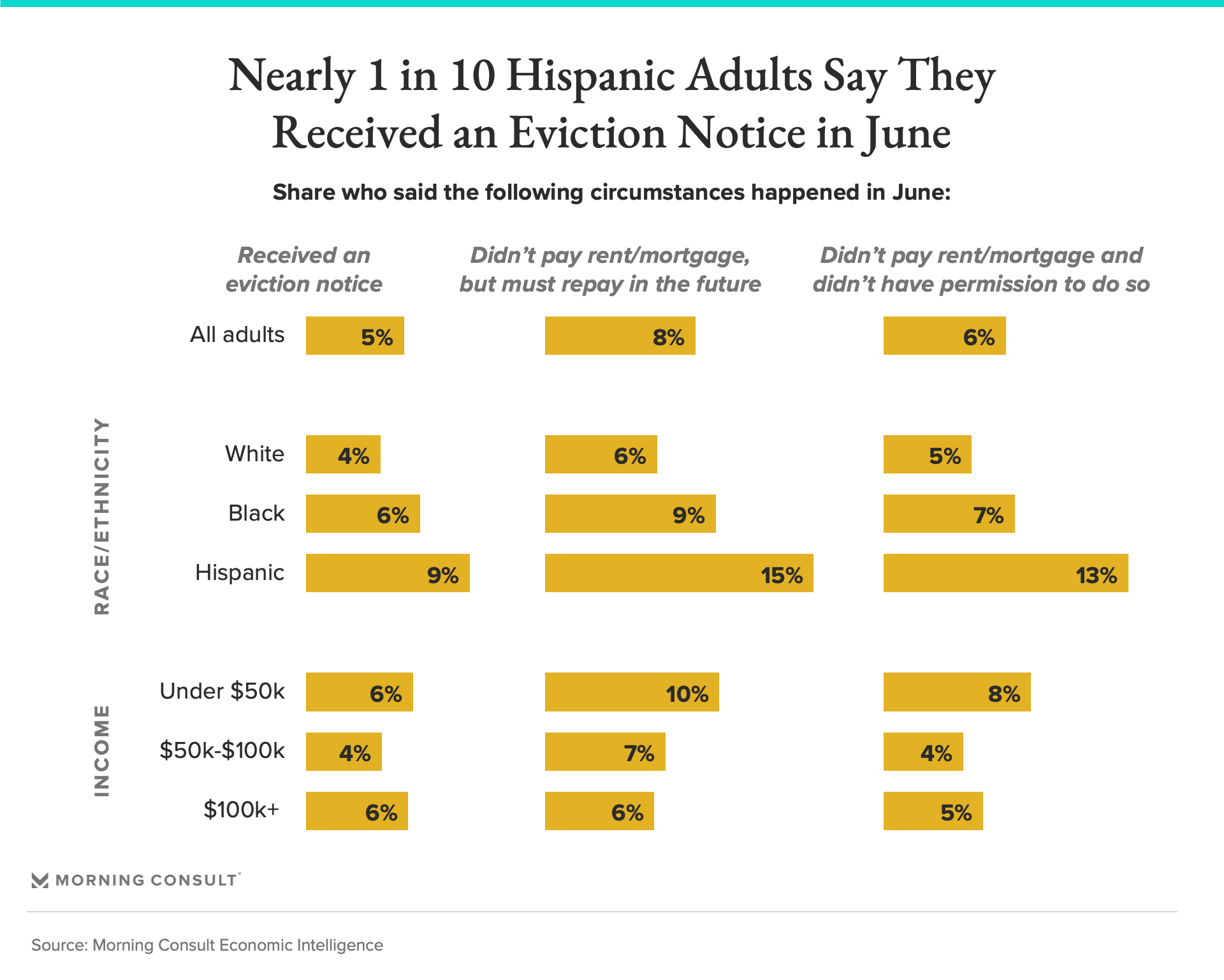 9% of Hispanic adults and 6% of Black adults said they received an eviction notice in June.
