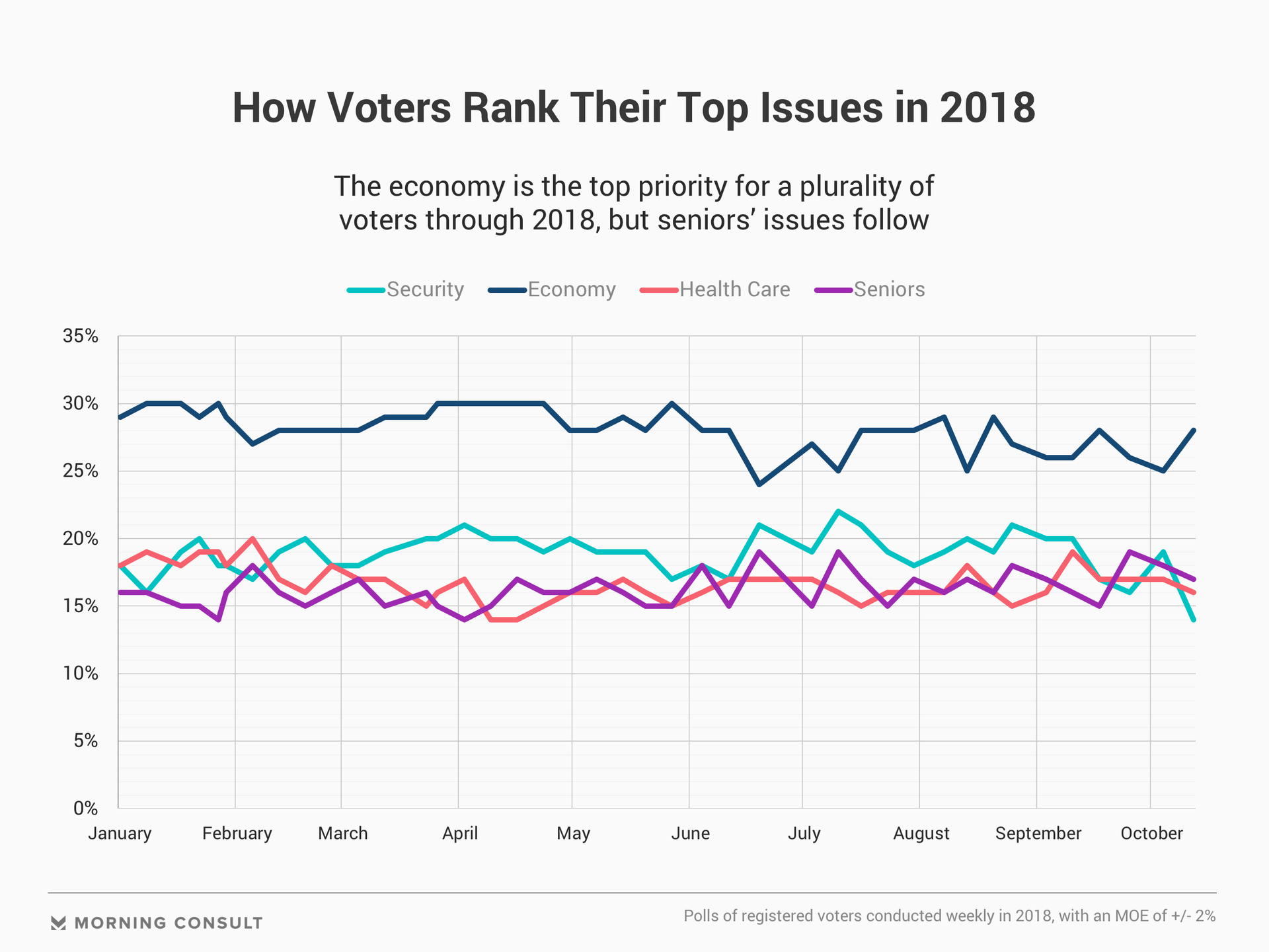 - 17% of voters prioritize seniors’ issues, the 2nd-highest priority after the economy