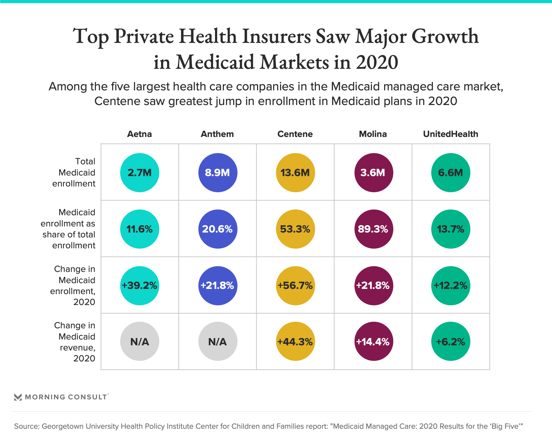 Executives from Centene and CVS Health have also projected optimism about their upcoming Medicaid offerings in recent months. Anthem Inc. and Molina Healthcare Inc. are the other major insurers in the Medicaid managed care market.