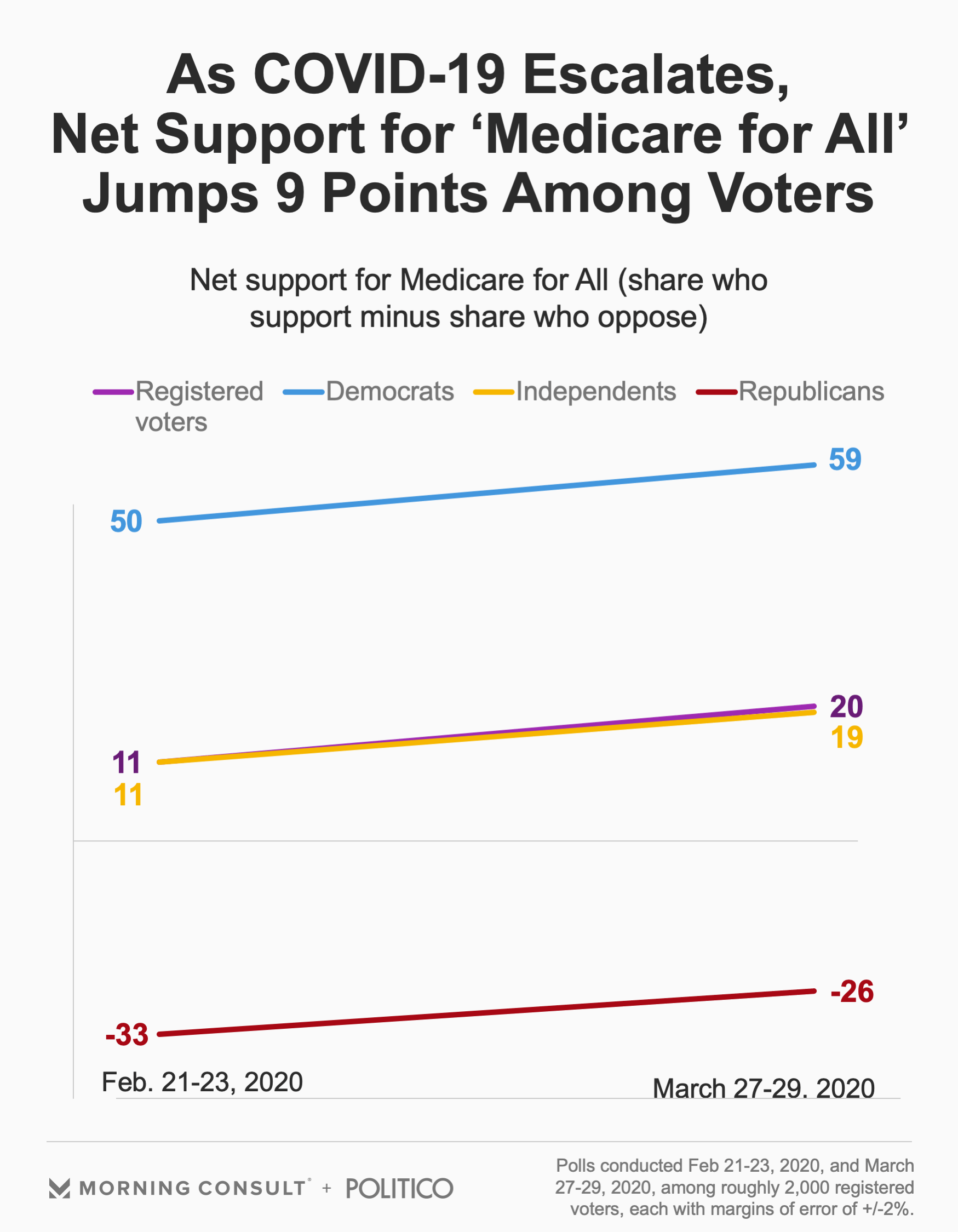Independents helped fuel Medicare for All’s rise in March, with an 8-point uptick in net support.
