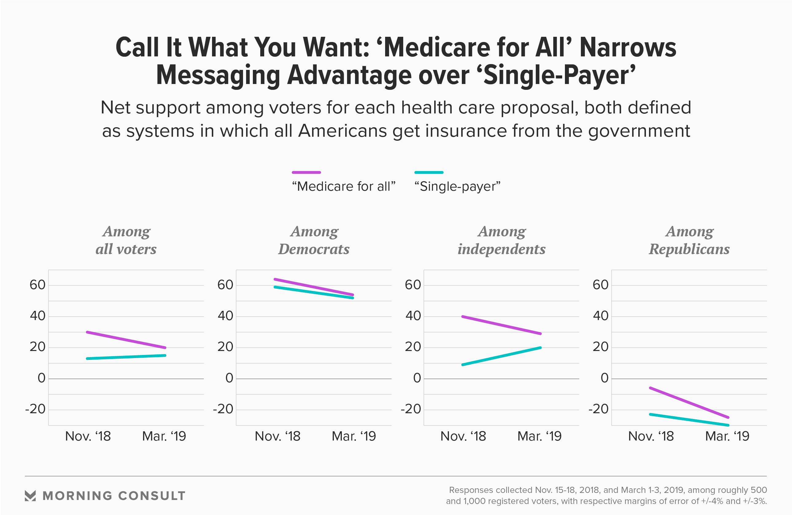 - In November 2018, “Medicare for all” had a 9-point advantage over “single-payer.”