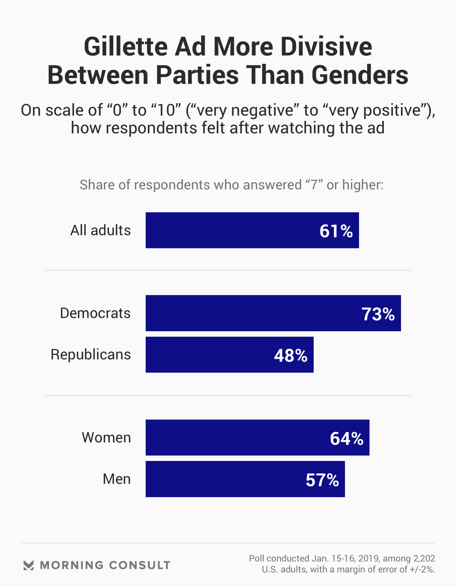 61% of U.S. adults viewed Gillette’s ad favorably vs. 17% who didn’t.