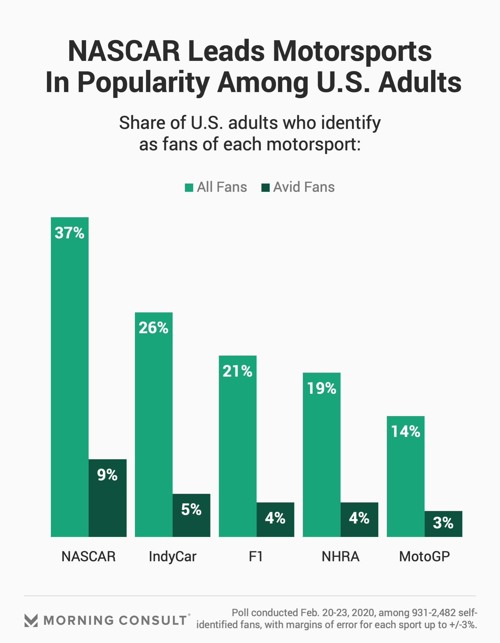 MotoGP trails NASCAR, IndyCar, F1 and NHRA in overall popularity, with 14 percent of U.S. adults identifying as fans of the sport.