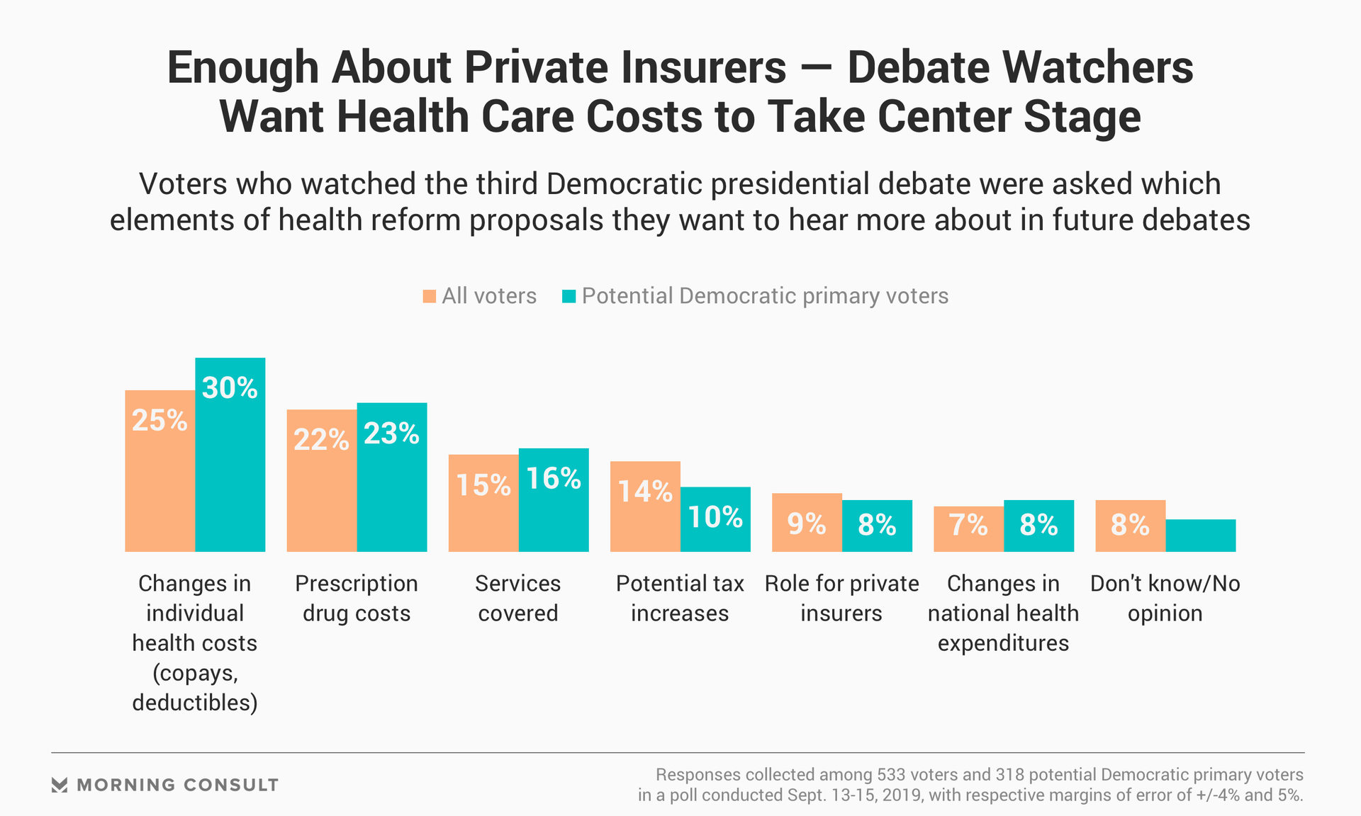 1 in 4 voters who watched the third Democratic debate want to hear more about changes in individual health costs.