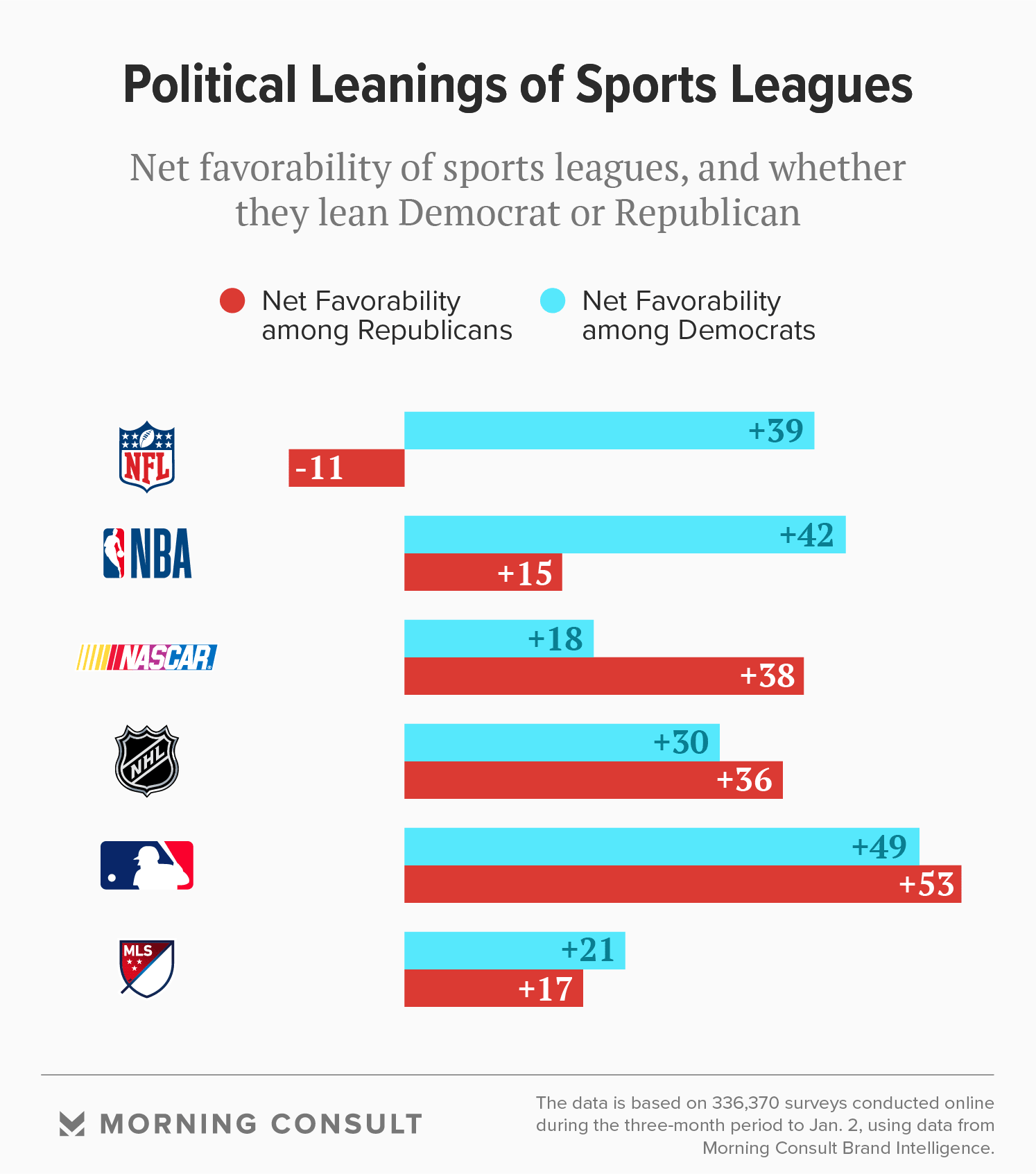 Morning Consult’s list of Most Polarizing Brands in America shows a clear political tilt among each sport’s fans, with the NBA dominated by a Democratic fan base and NASCAR's more strongly Republican.