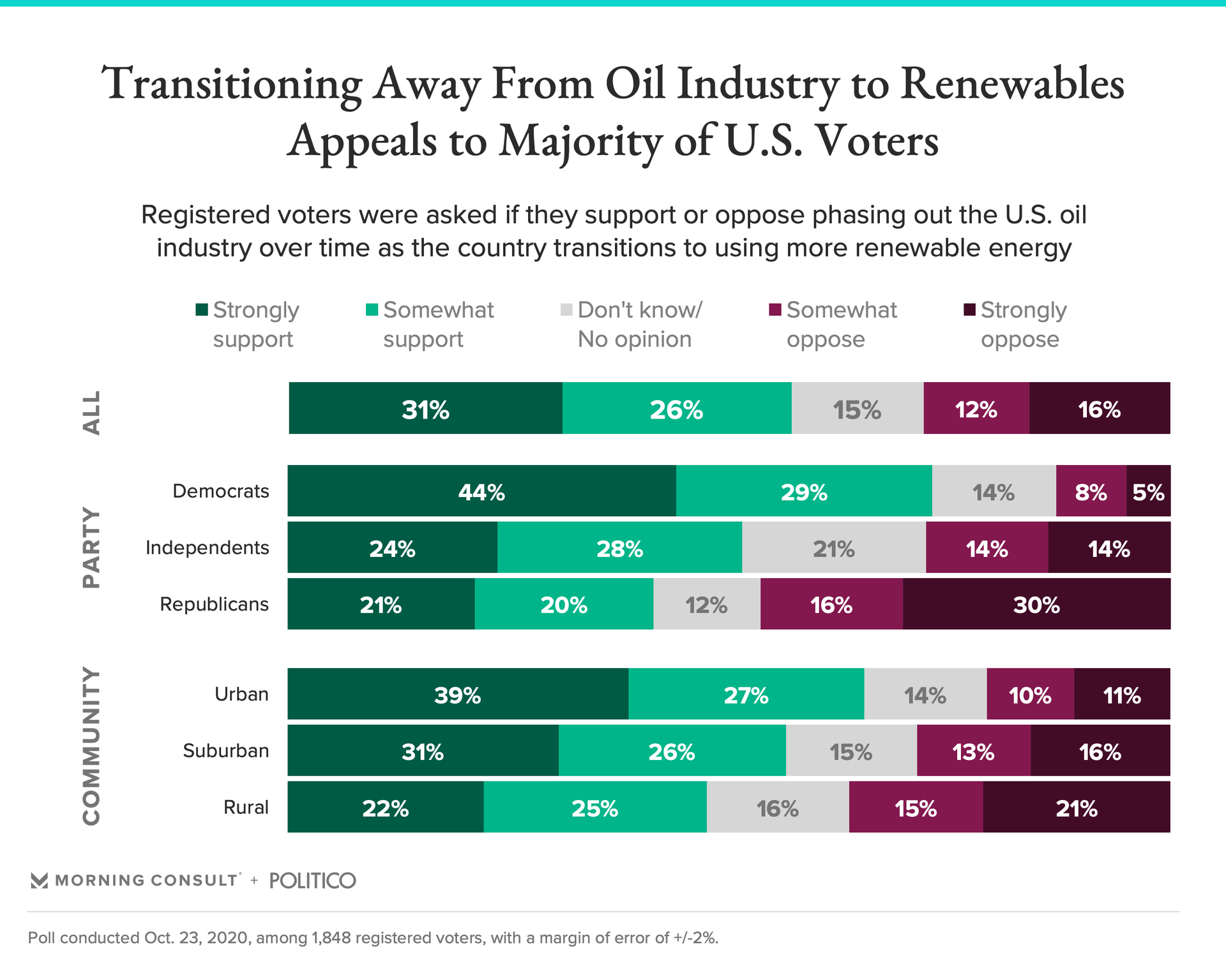 But according to a new Morning Consult/Politico poll, 57 percent of the country’s voters back a concerted oil-to-renewables transition, while 28 percent oppose it.