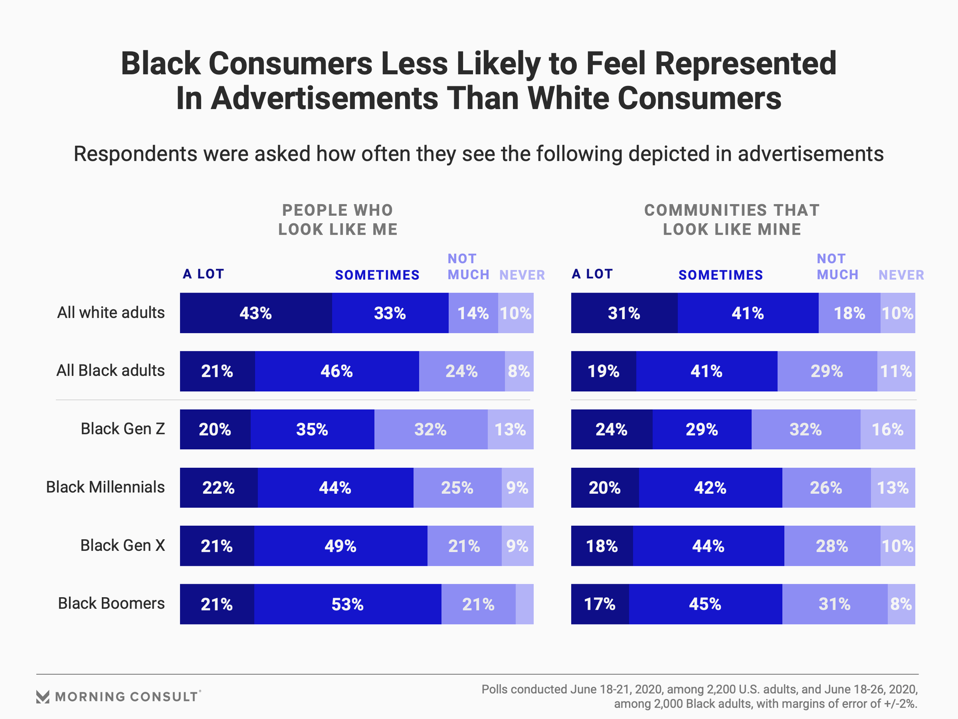 Forty-three percent of white adults said they see themselves represented in ads “a lot,” compared with only 21 percent of Black people who said the same.