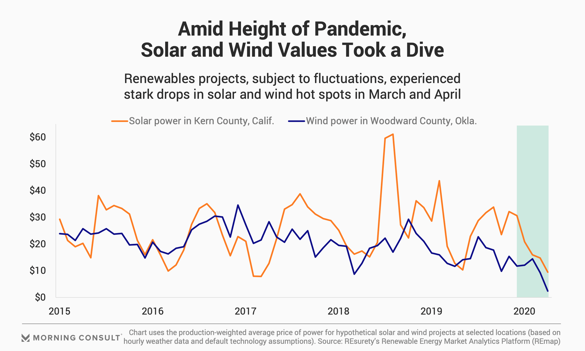 Just as the coronavirus pandemic has contributed to a plunge in oil prices, it has also cratered the value of wind and solar energy in many parts of the country.