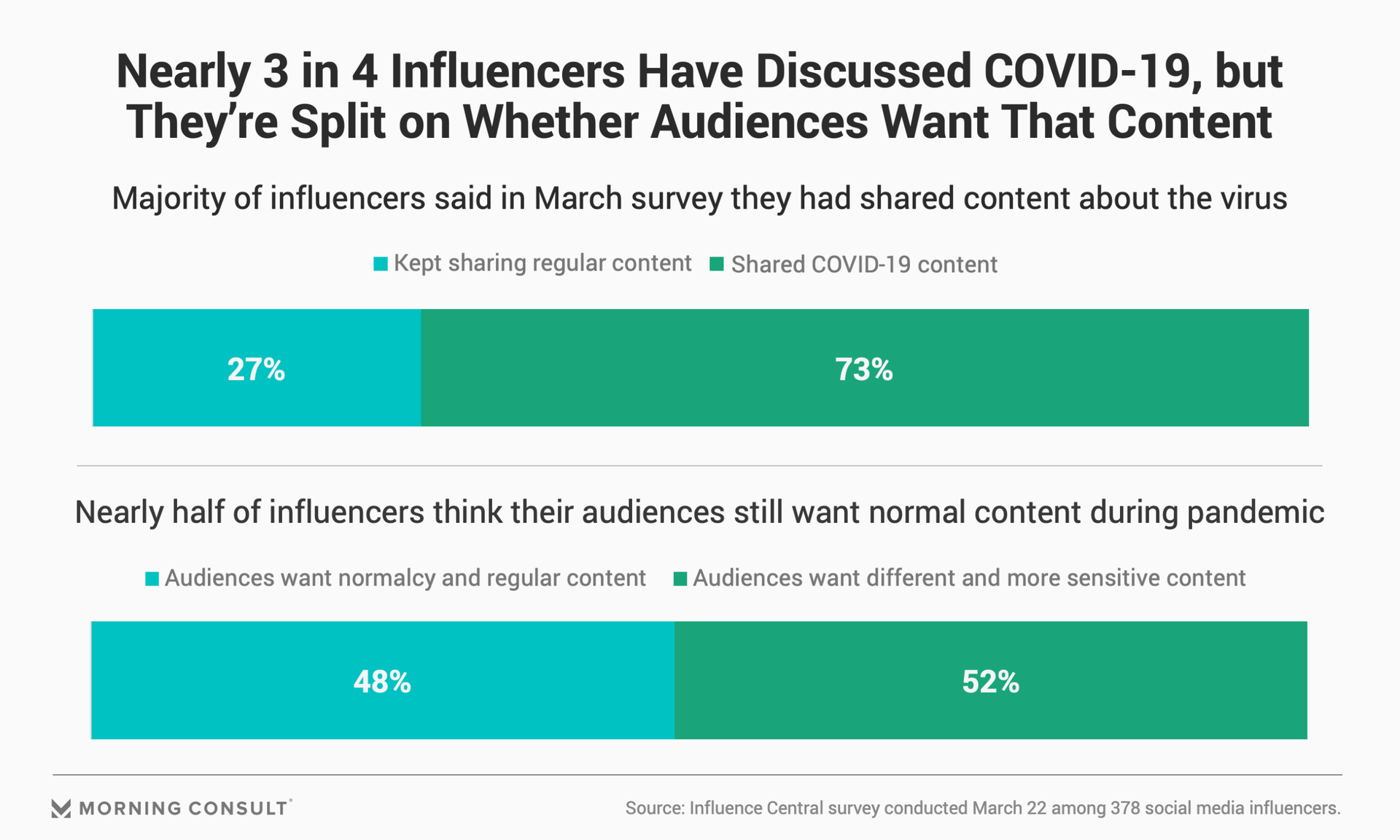 But not all influencer marketing has been filled with unsubstantiated or questionable coronavirus content. Mae Karwowski, founder and CEO of Obviously, a New York-based influencer marketing agency, said in recent weeks her company has been overwhelmed by the sheer number of influencers reaching out to them for advice on how to create content for their followers during the pandemic.