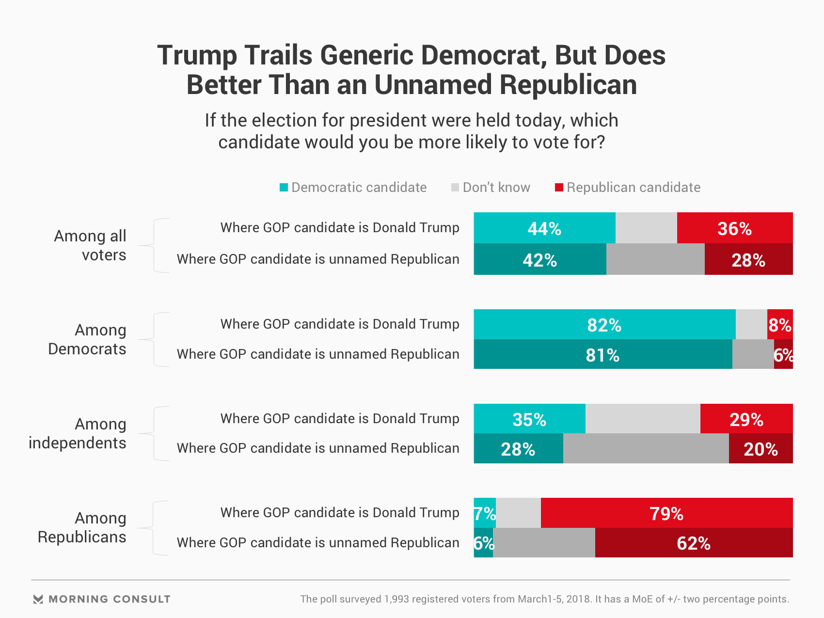 President Donald Trump trails a generic Democrat in a hypothetical election held now, but fares better than a different potential Republican presidential nominee, a new Morning Consult/Politico poll found.