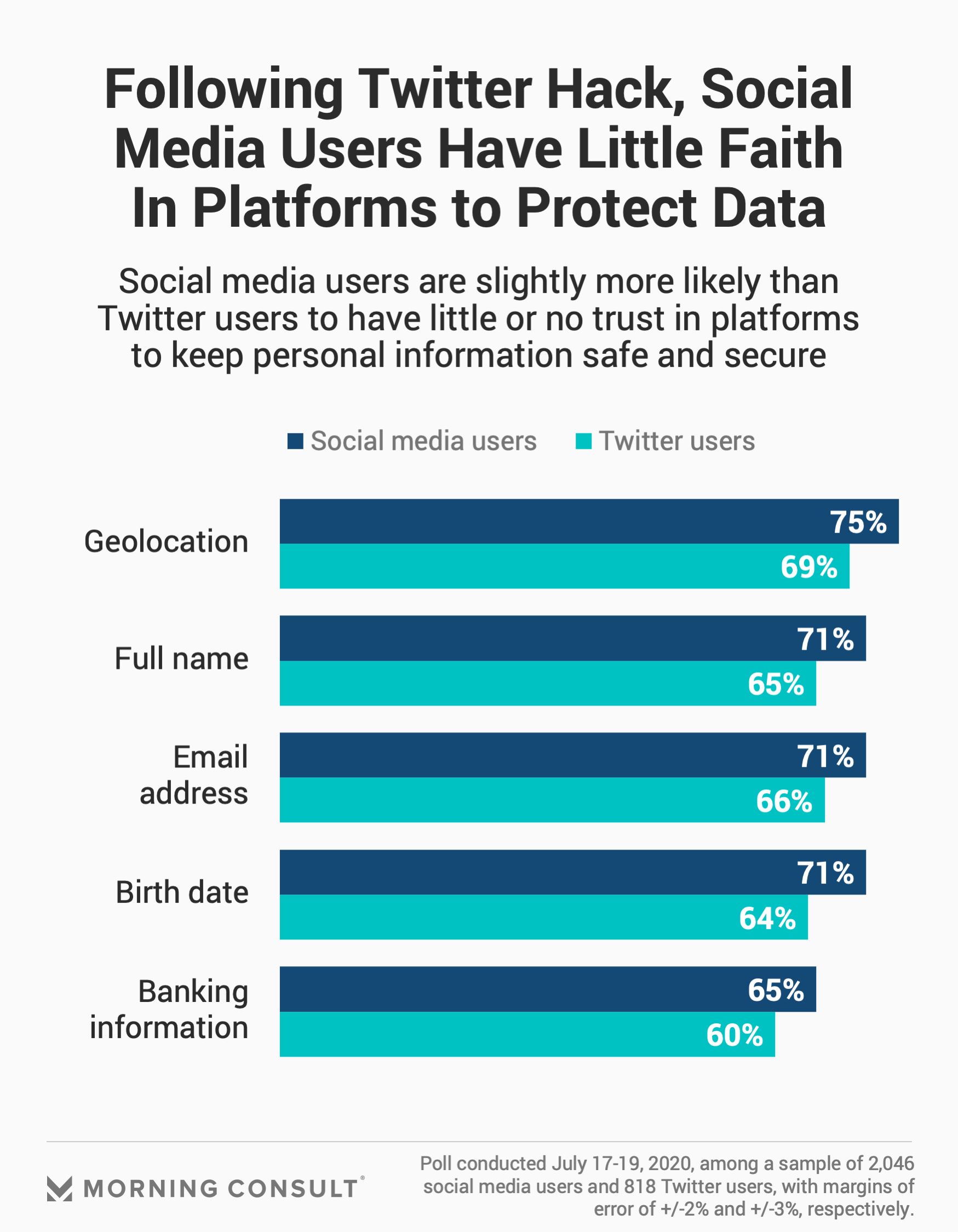 For both social media users and Twitter users, the event has shaken their trust in providing any social media platform even their most basic personal information: 71 percent of social media users and 66 percent of Twitter users in the survey said they had little or no trust in social media companies’ ability to keep their email address safe and secure, while similar shares said the same about their birth date.