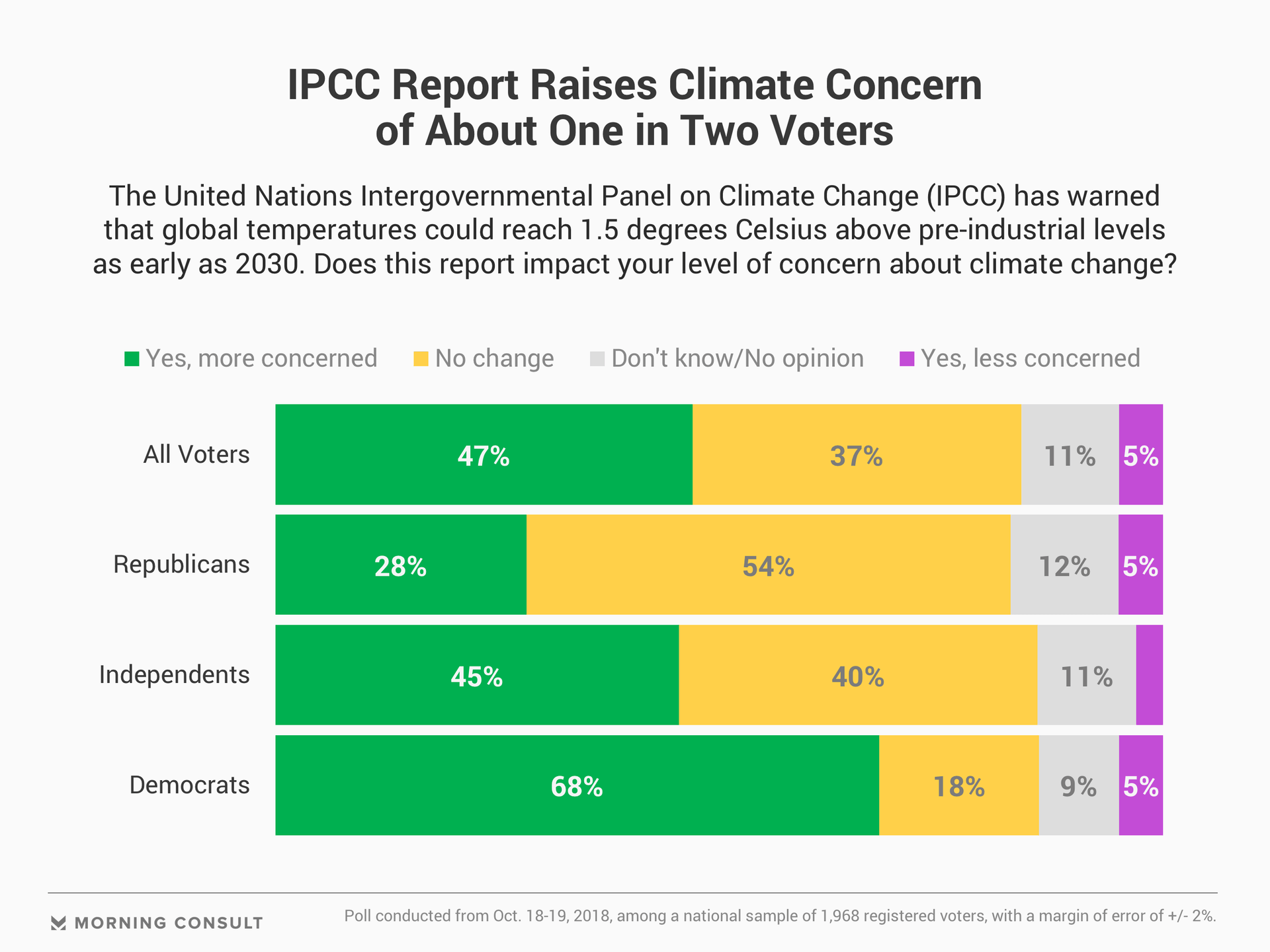 - 47% of voters said the report increased their concern over climate change. 37% reported no change in concern.