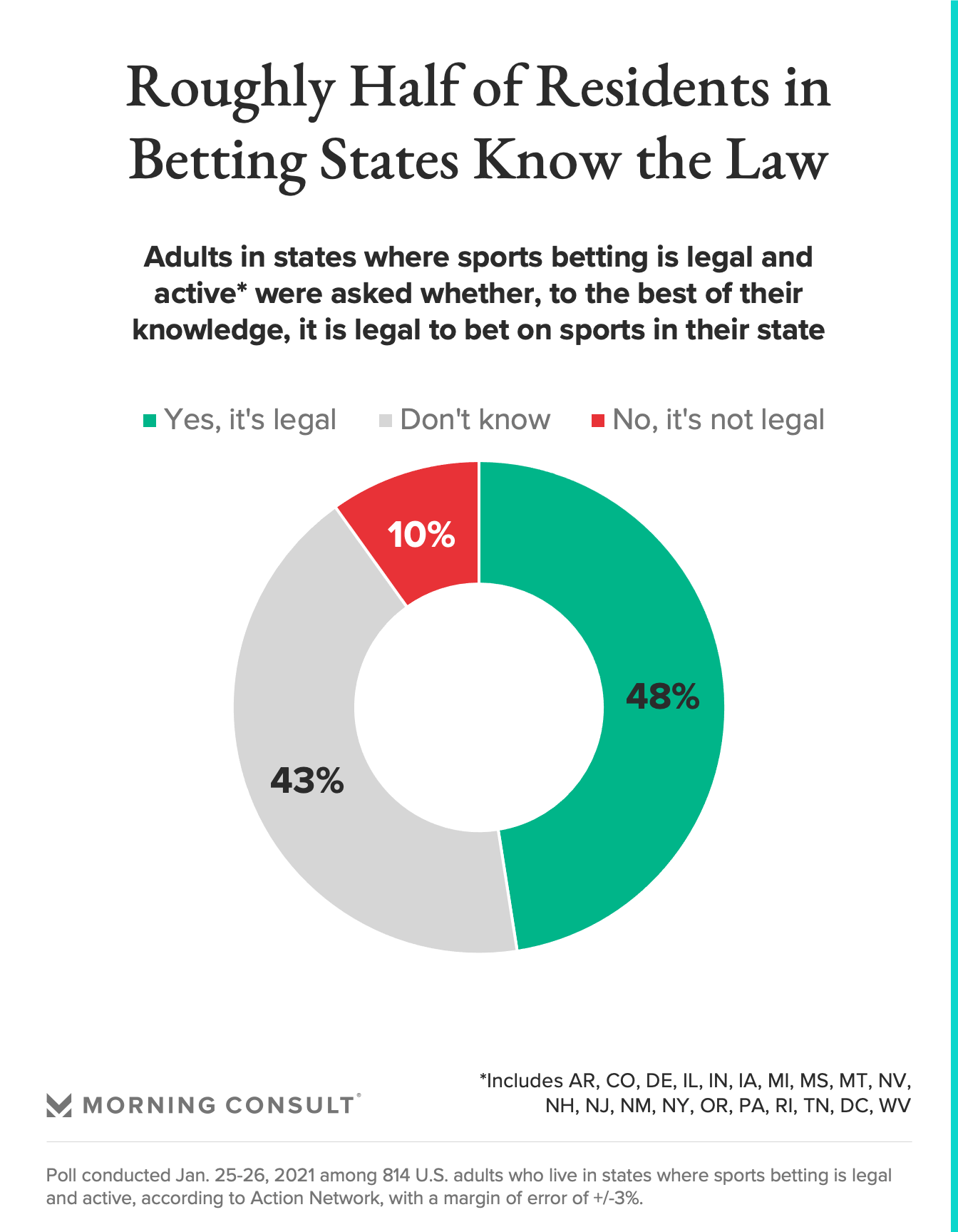 52% of adults living in states where sports betting is legal don’t know they’re allowed to bet on sports.