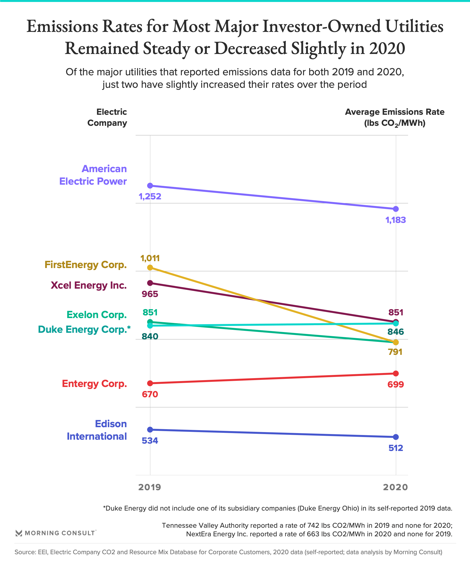 Many, but Not All, Major U.S. Utilities Saw Their Average Emissions Rate Fall Between 2019 and 2020