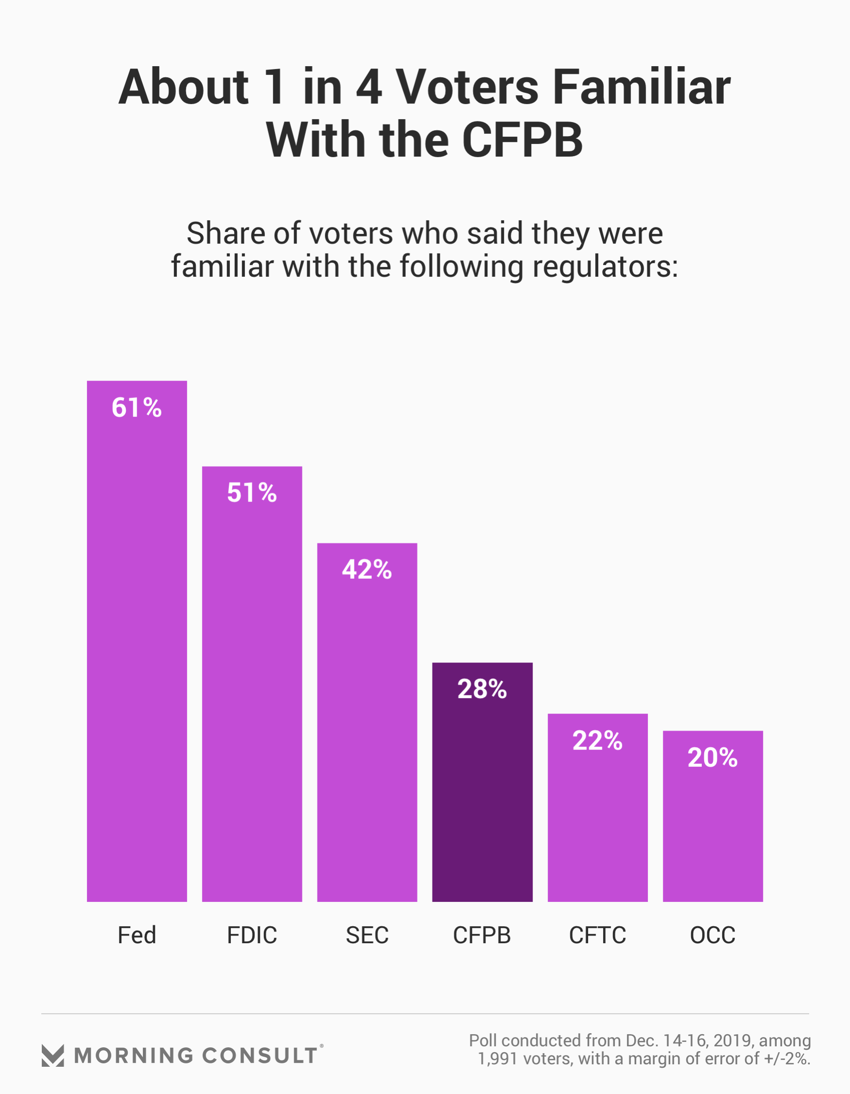 Voters aren’t even likely to say they know what the CFPB is, according to recent data from Morning Consult.