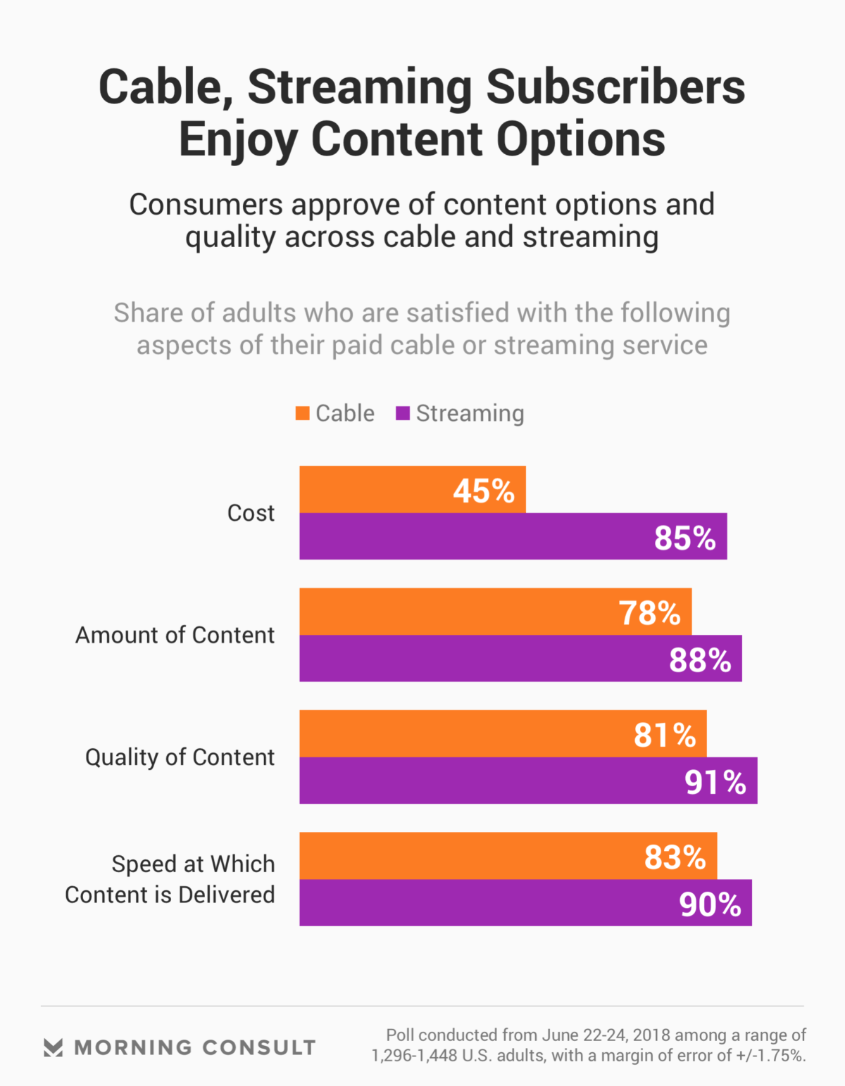 And a new Morning Consult survey shows cable subscriber satisfaction rivals that of streaming service customers — creating a ripe competitive field.