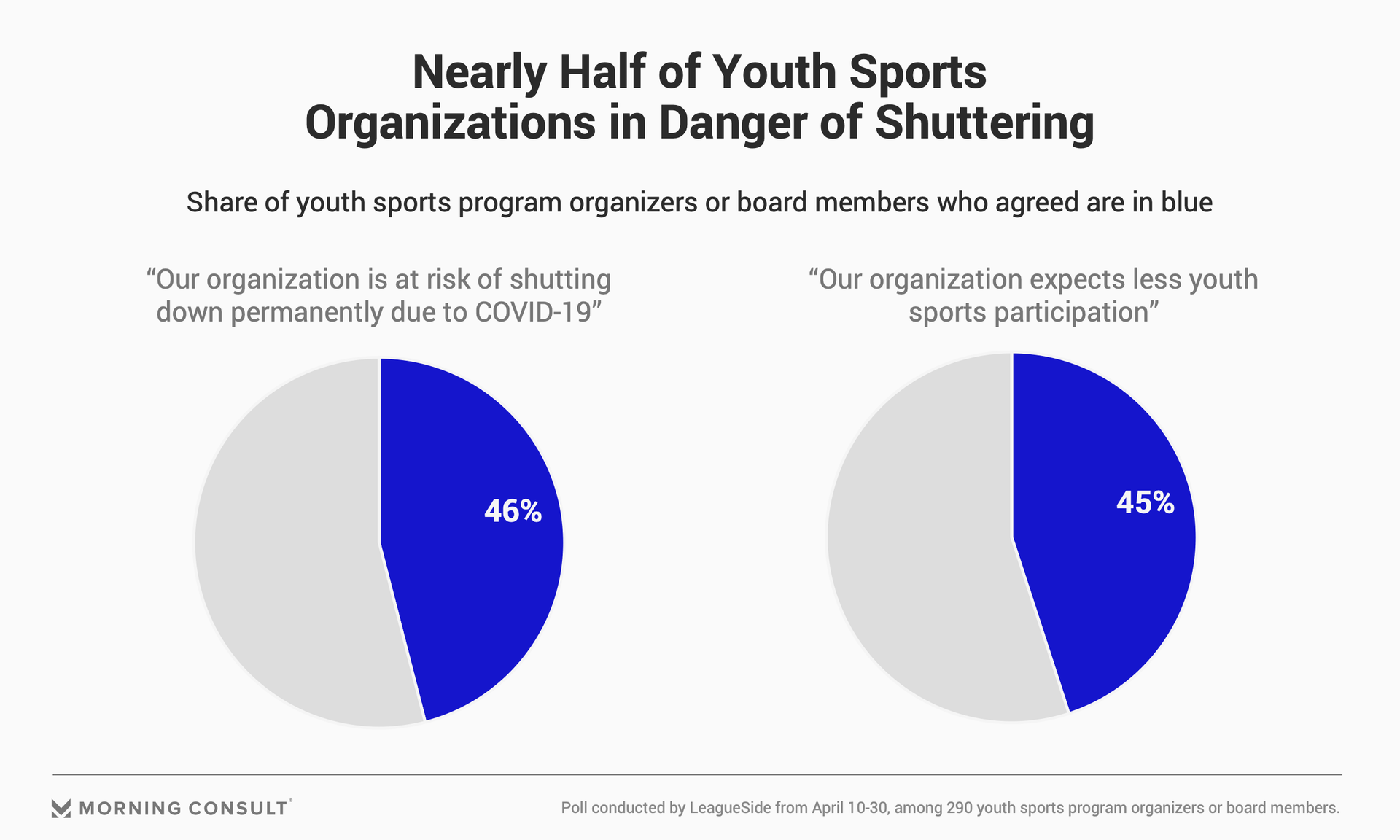 In the same vein, 54 percent of youth sports parents expressed concern that a program their children participate in could fold, according to a new Morning Consult poll.