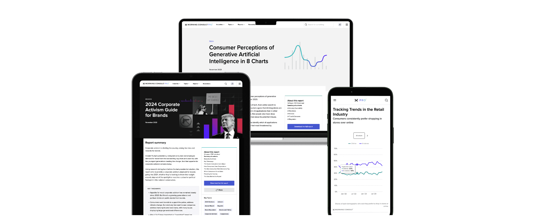 Morning Consult Pro's essential insights are underpinned by a vast library of proprietary datasets with rich demographic detail, additional survey questions, and historical trends. Now, enterprise subscribers are able to tap into this ever-growing catalog of survey data with Pro+. See what datasets are available here.