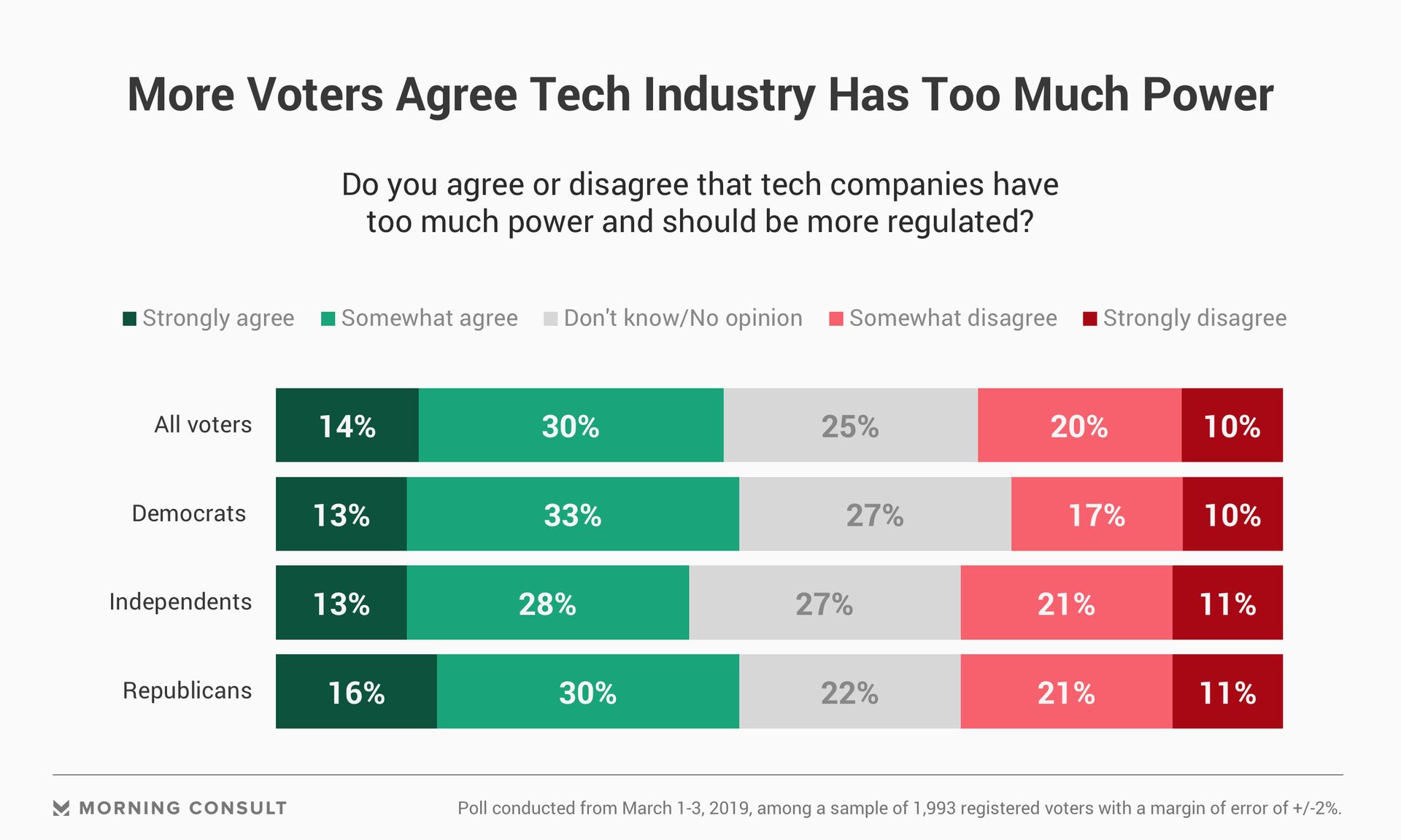 44% said tech companies have too much power and the federal government should step in to regulate more.