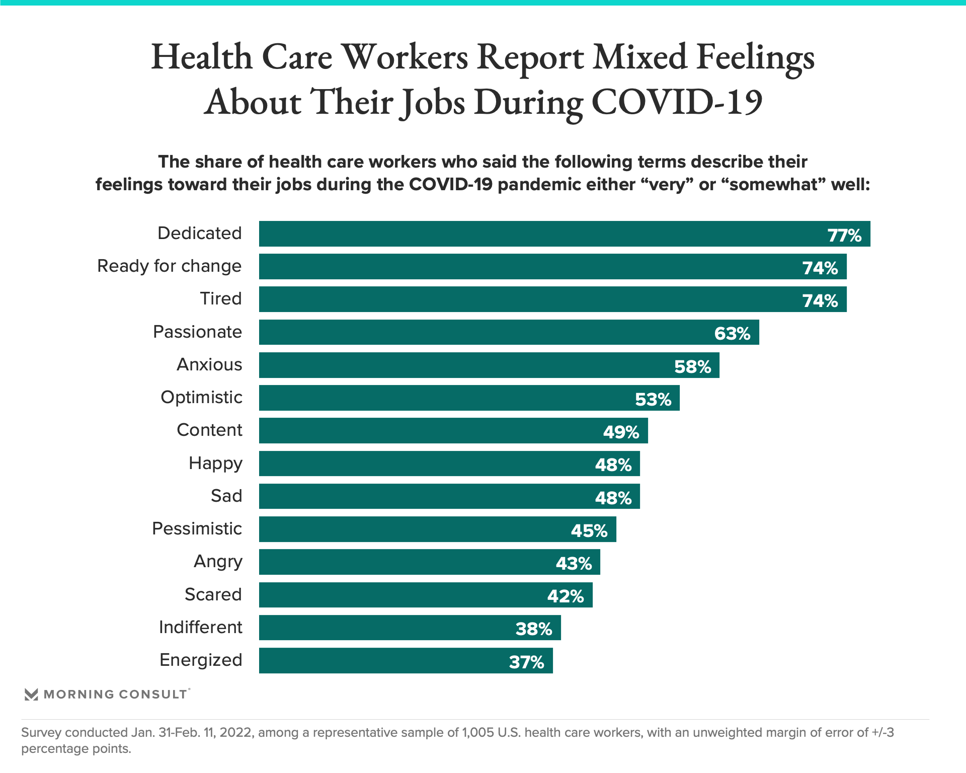 A new special report from Morning Consult and Axios explores how health care workers view the pandemic response and how COVID-19 has impacted their professional futures. The data is drawn from a survey of 1,000 health care workers and is a follow-up to October 2021 and January 2021 reports.